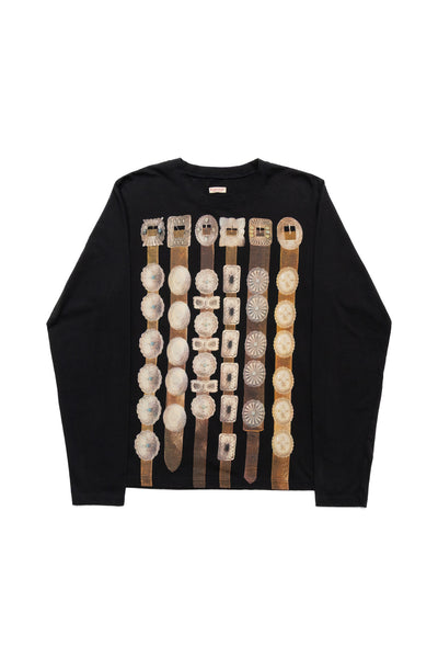 20/- Jersey Crewneck Long Sleeve T (Curtain Concho) - Black