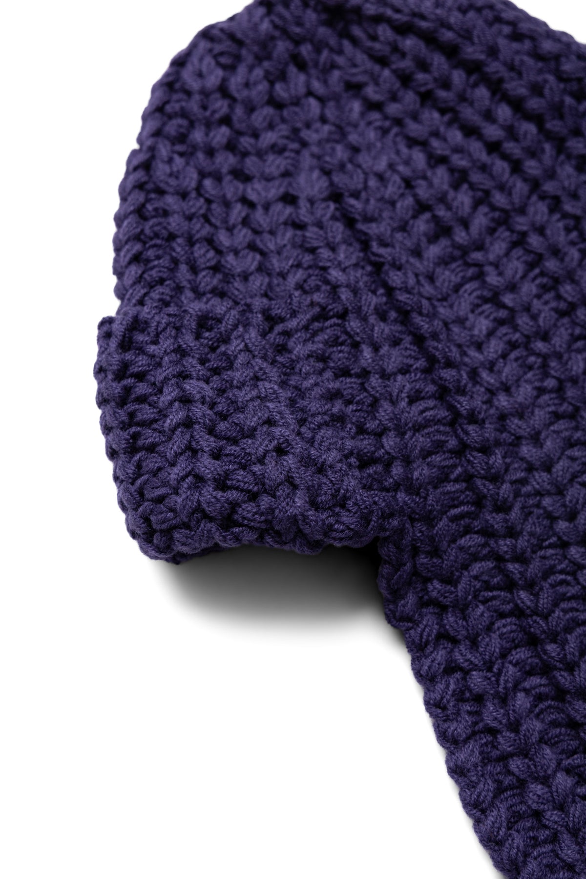 A loosely knitted knit cap with ears. You can also enjoy styling it with the strings tied.