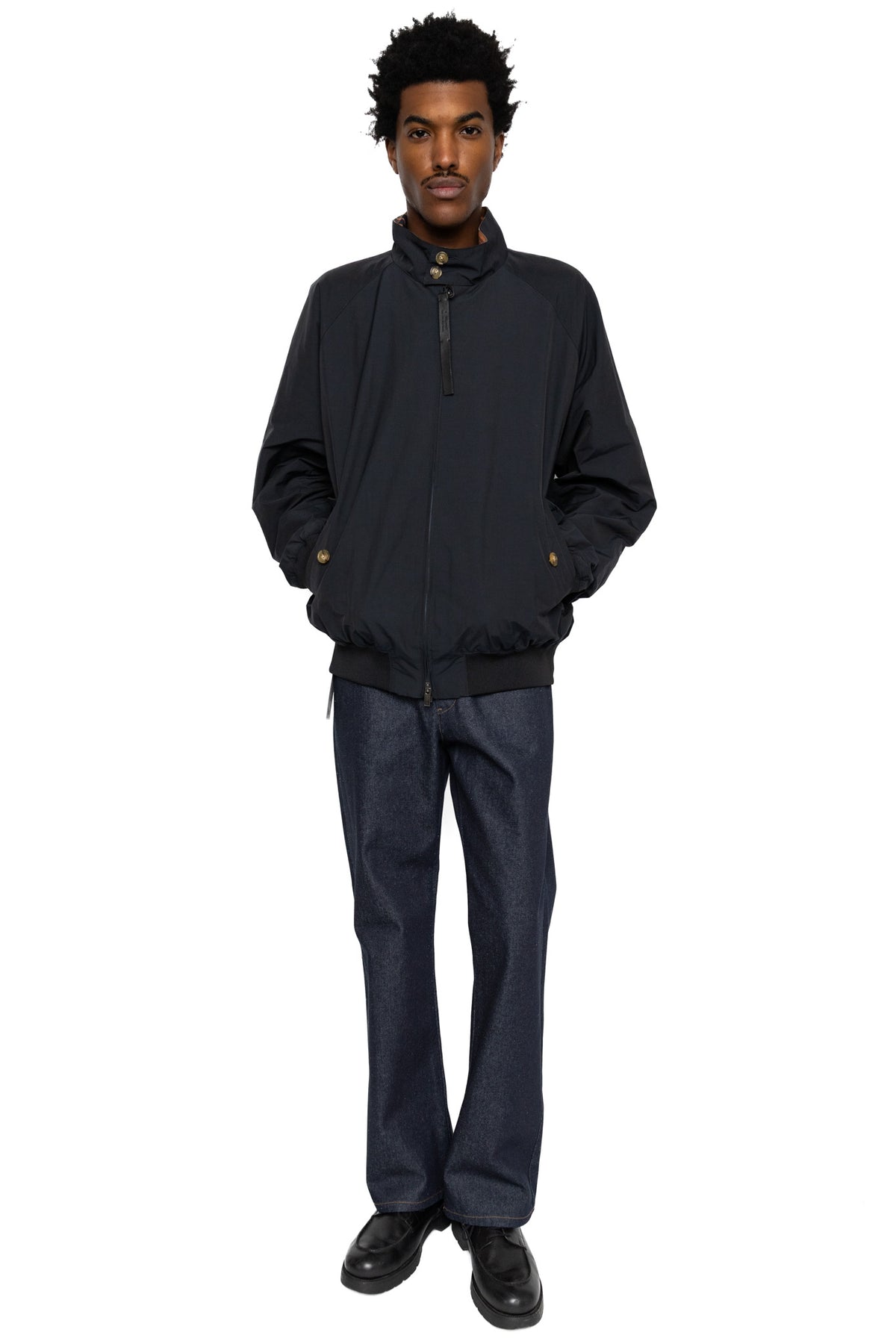- Features workwear-inspired, streamlined details such as a front button hook, denim pocket linings, and interlocked side seams.
