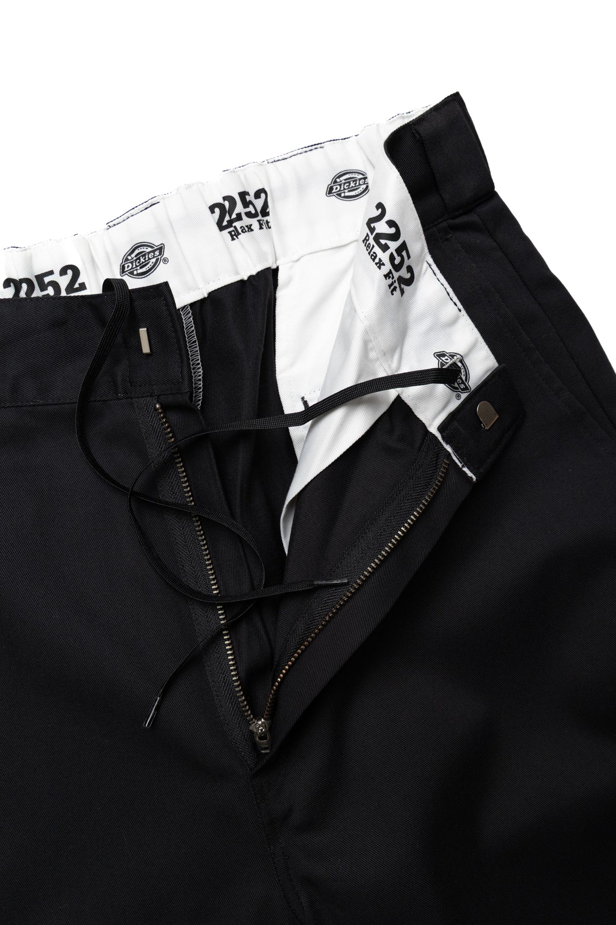 • The back of the waistband has a Dickies tag, and an N.HOOLYWOOD COMPILE tag is attached to the pocket.