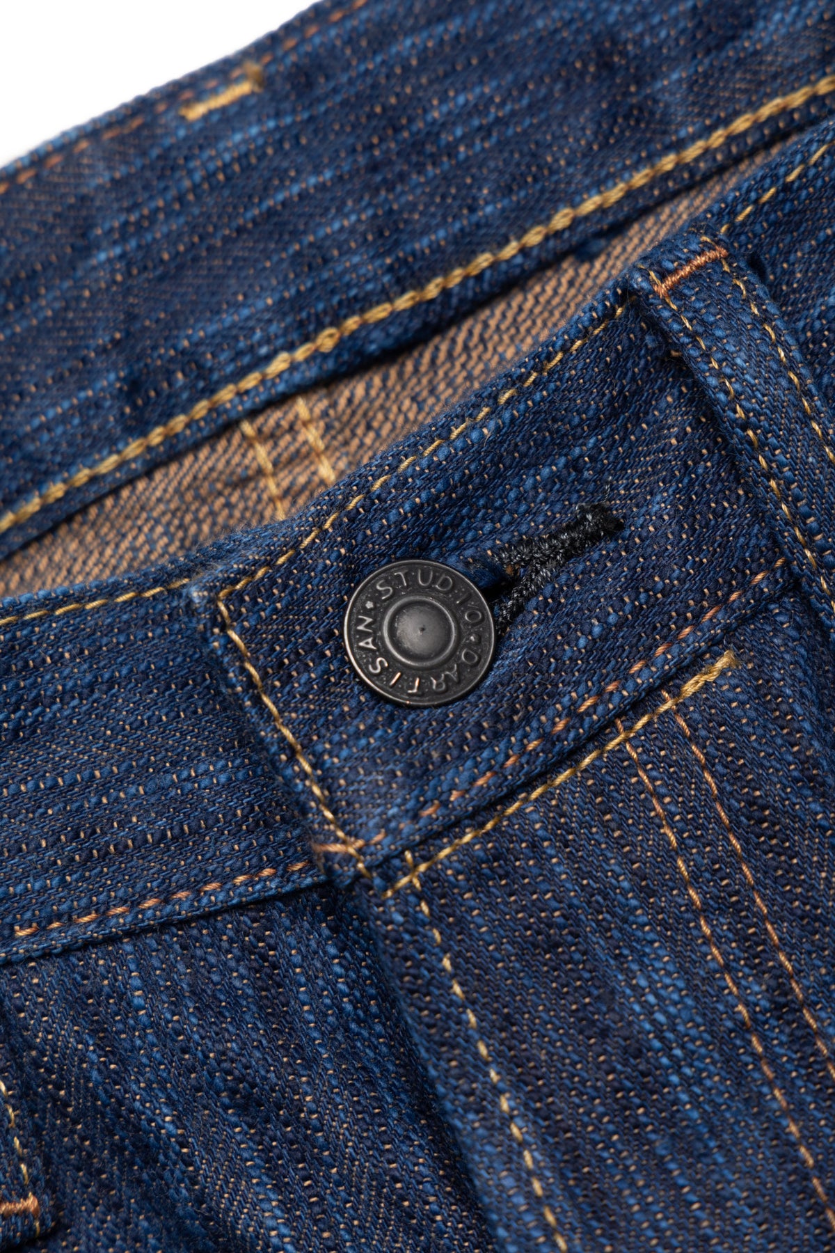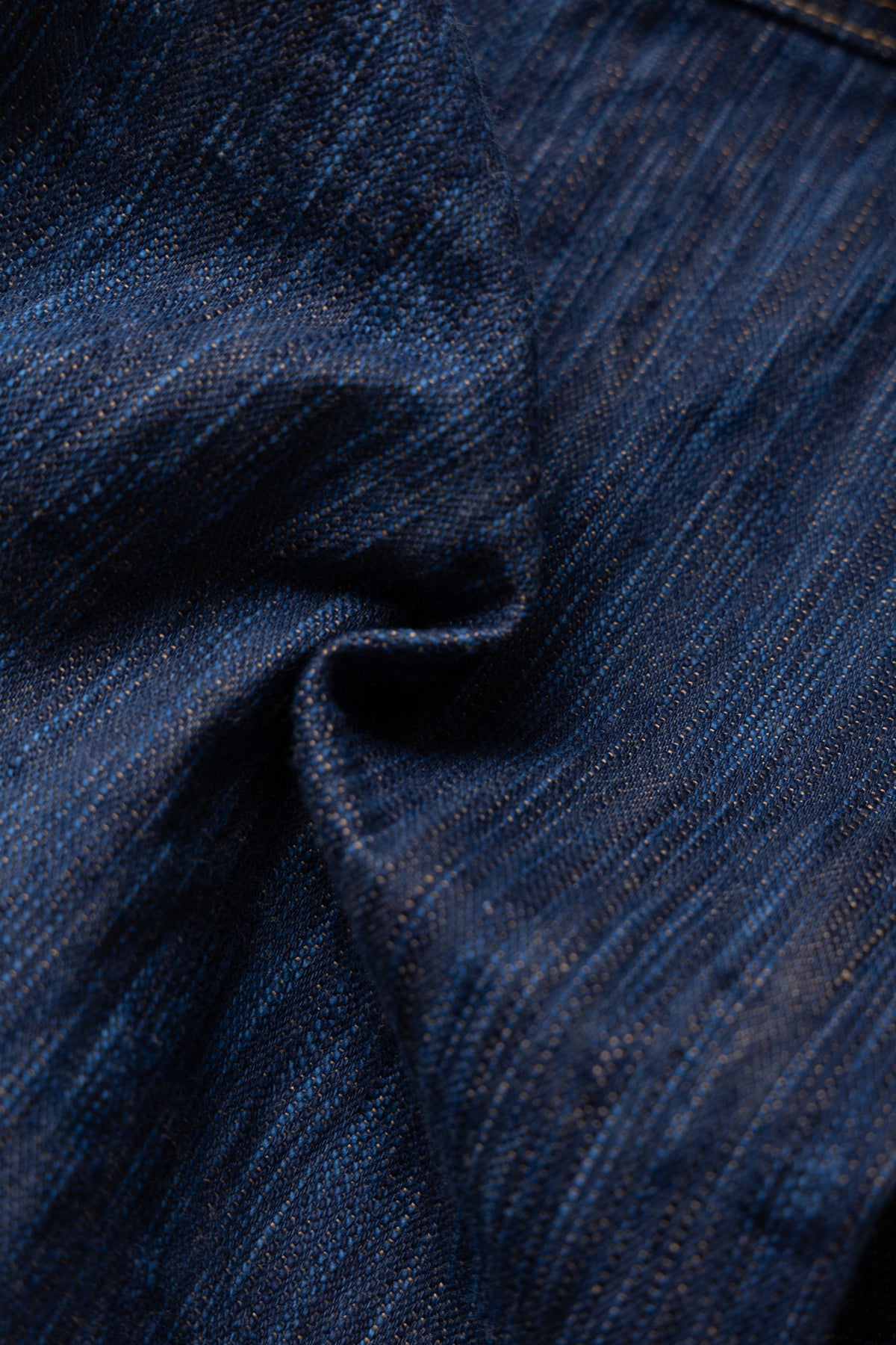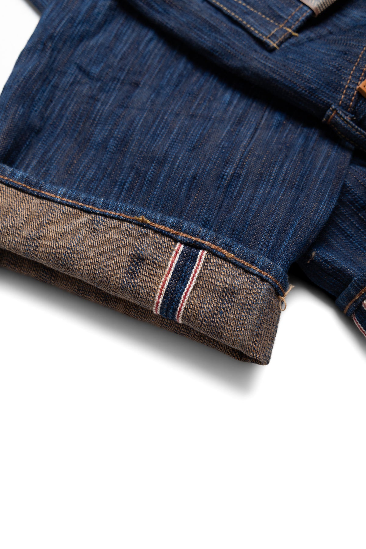 Hand-dyed yarn is thicker than machine-dyed yarn, creating a unique uneven texture, resulting in a fabric with a distinctive unevenness that sets it apart from regular 15oz denim.