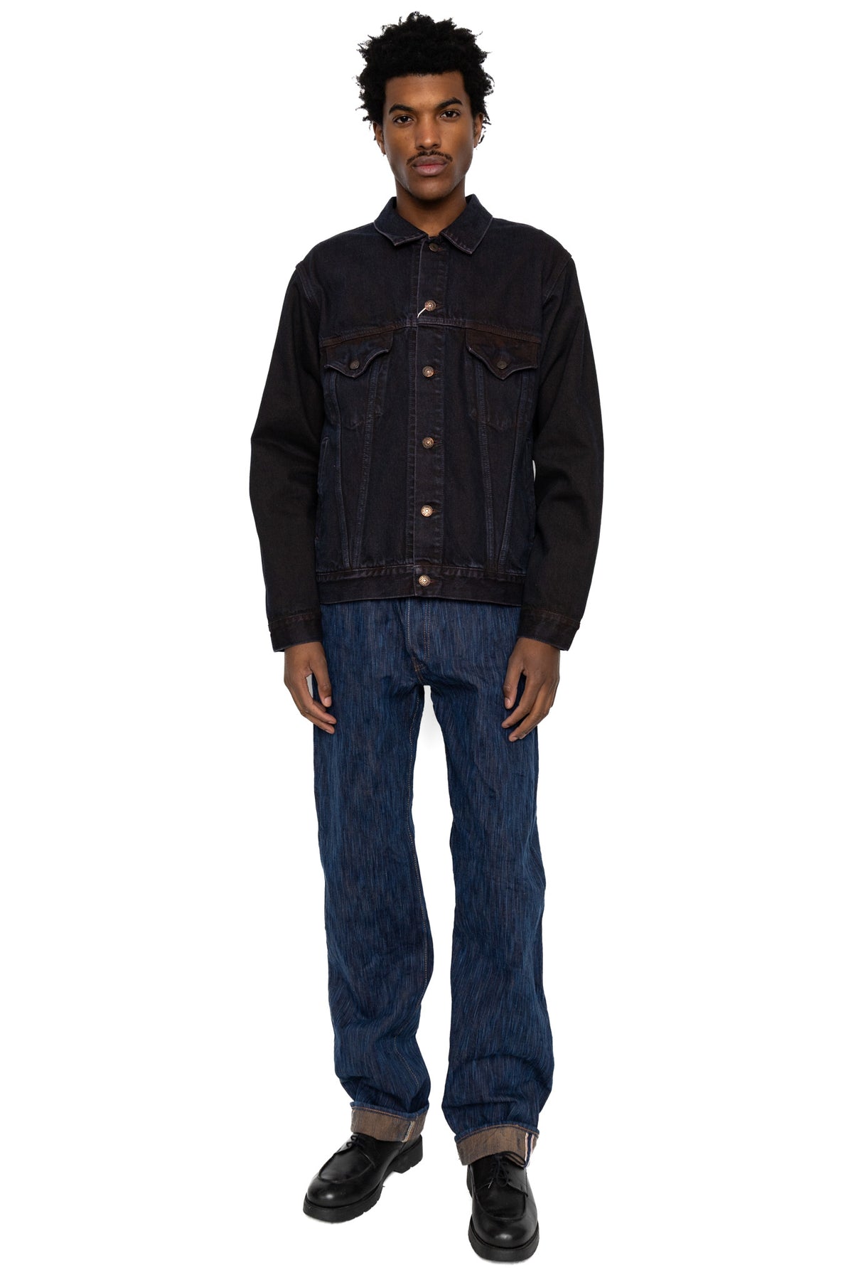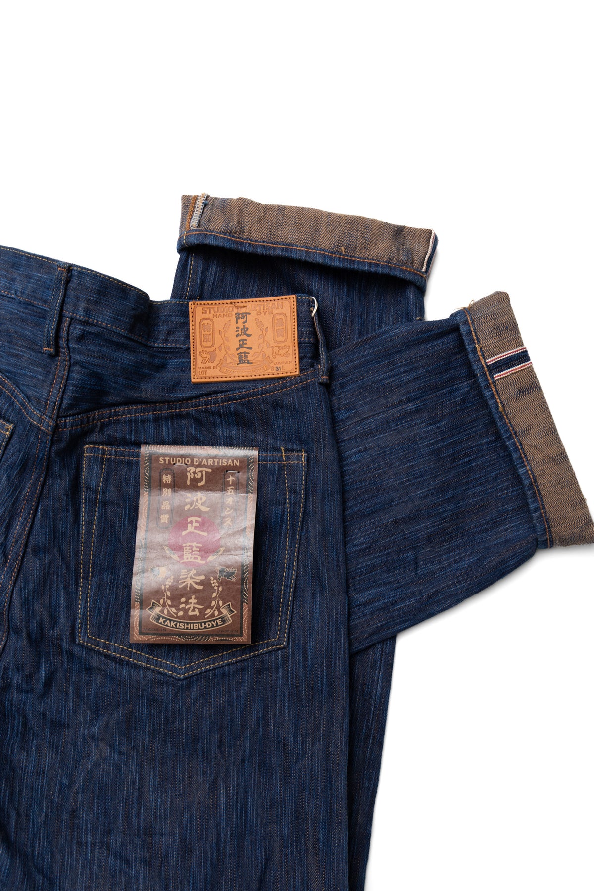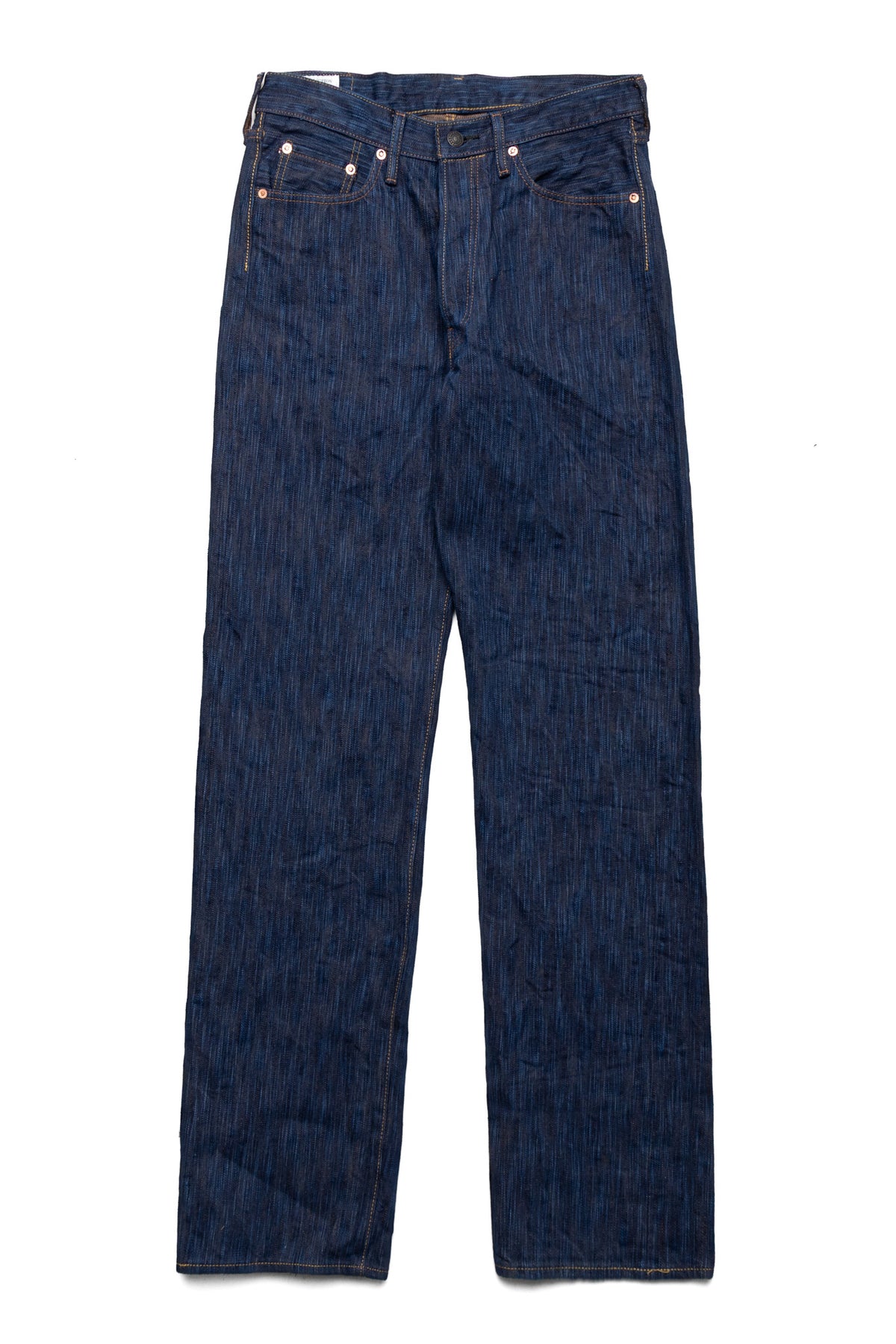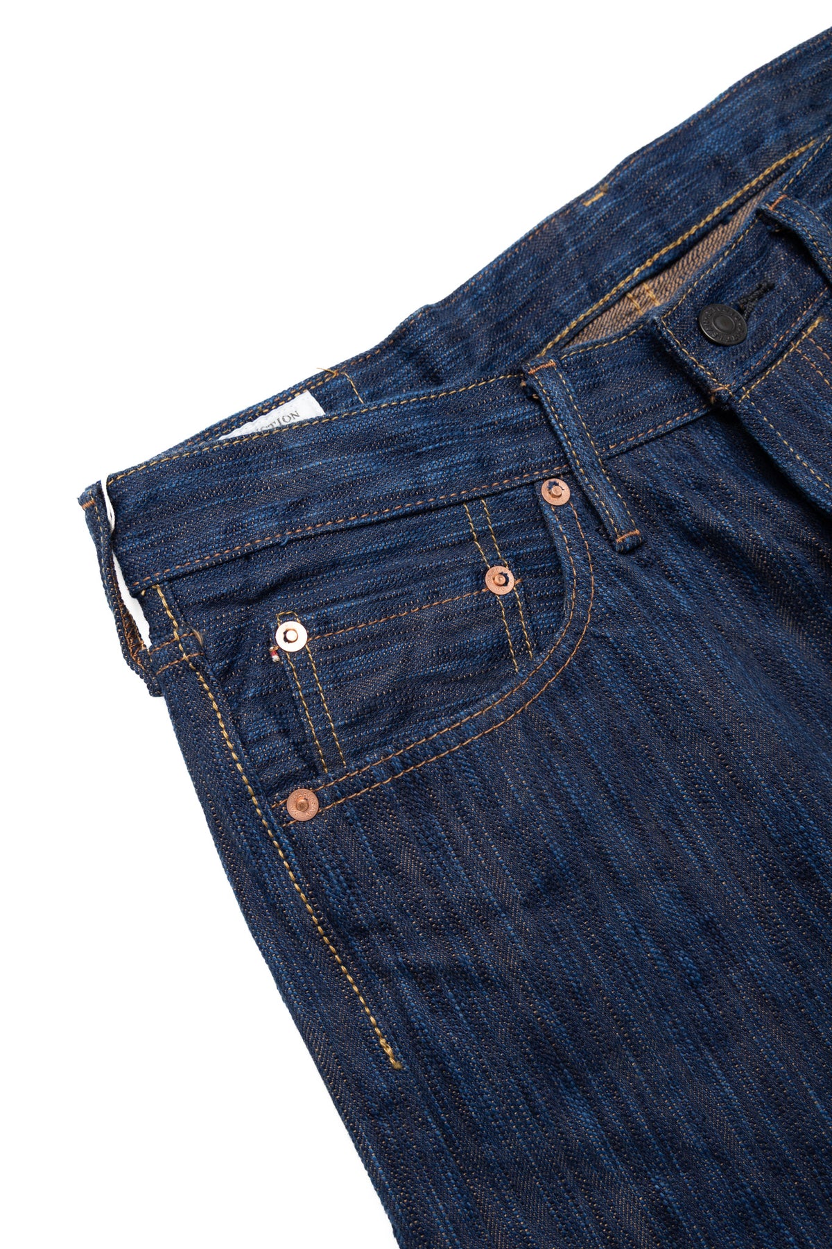Hand-dyed yarn is thicker than machine-dyed yarn, creating a unique uneven texture, resulting in a fabric with a distinctive unevenness that sets it apart from regular 15oz denim.