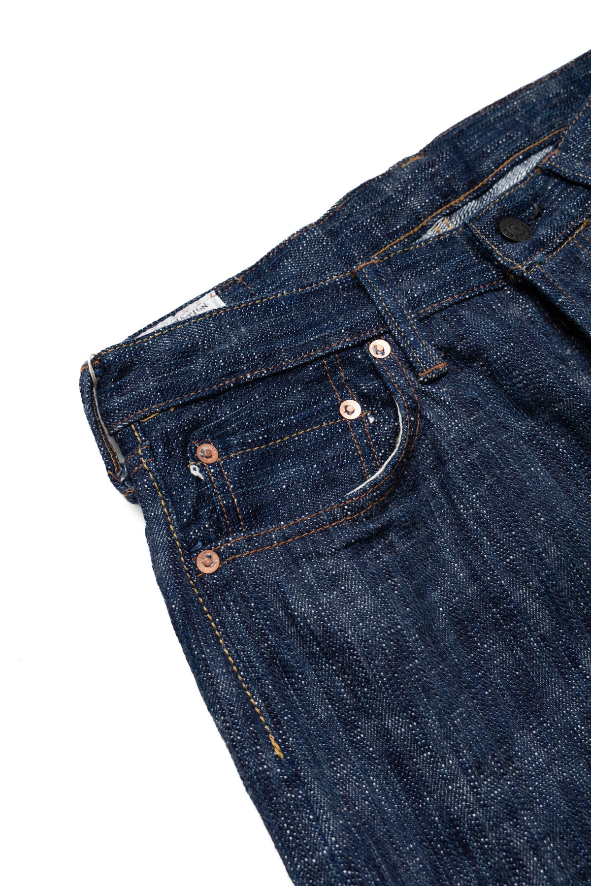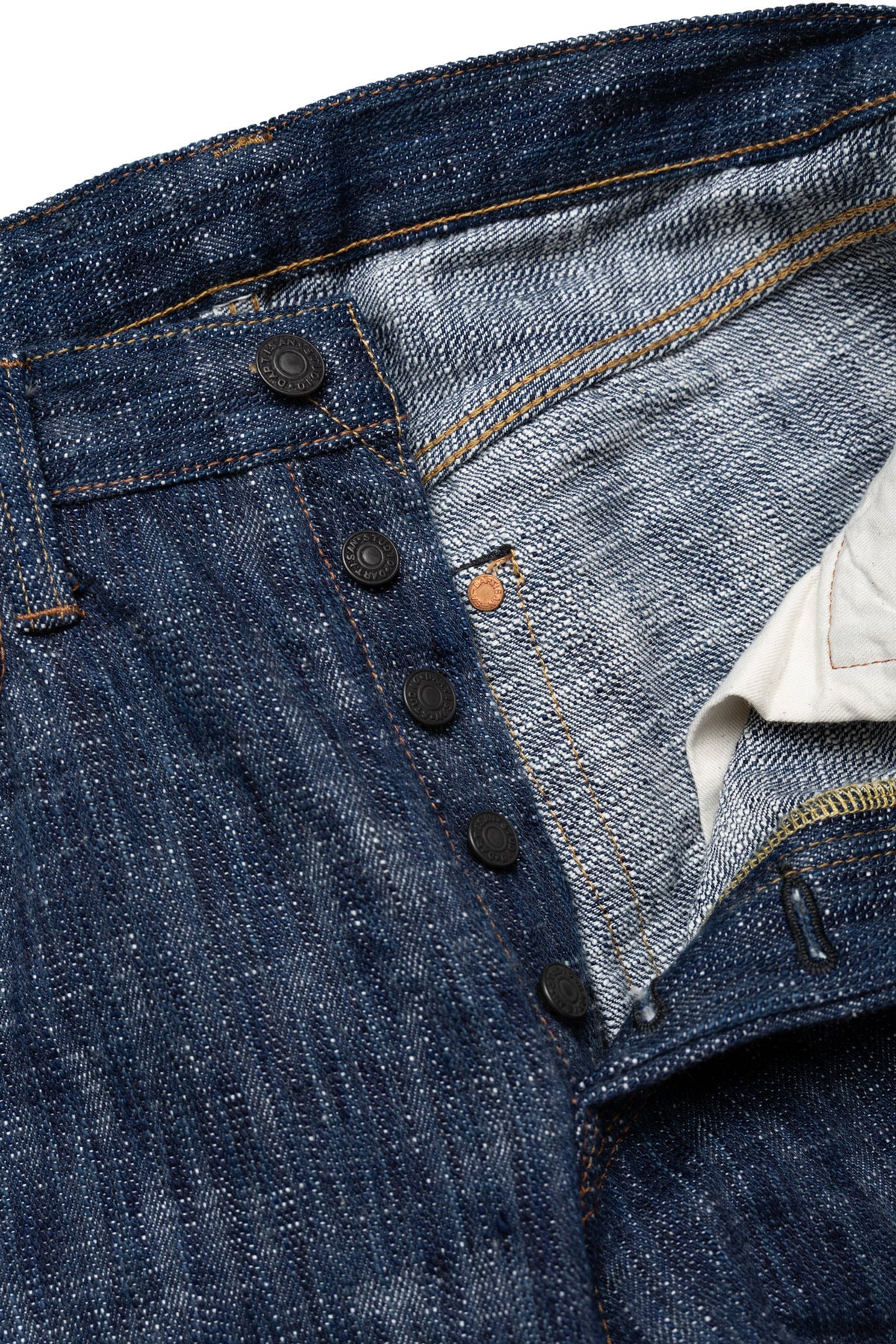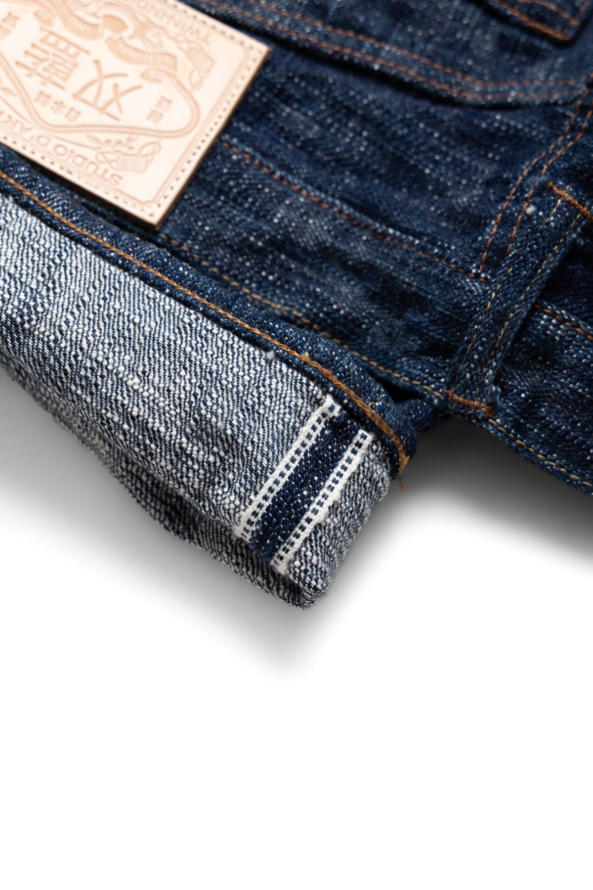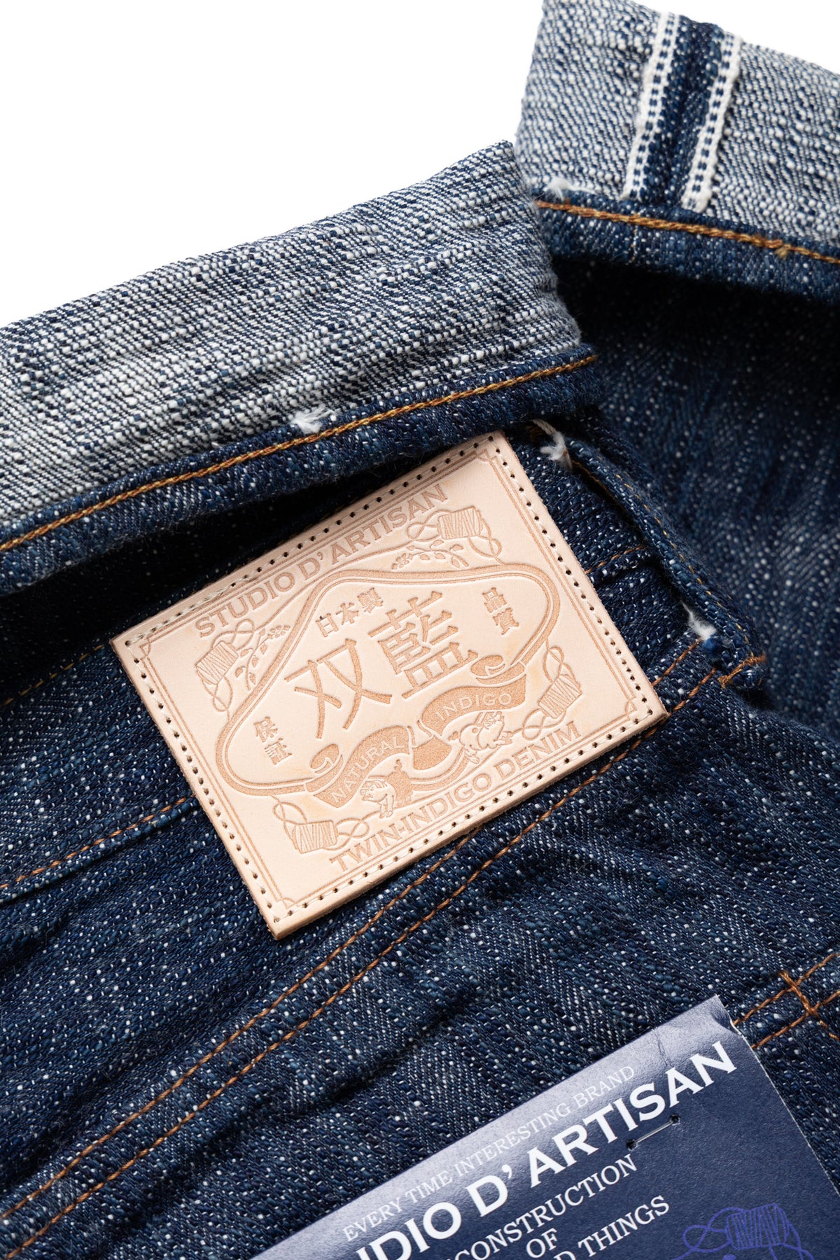 Original selvedge denim that combines two exquisite shades of reddish-indigo and greenish-indigo, creating a deep, rich texture and unique color.