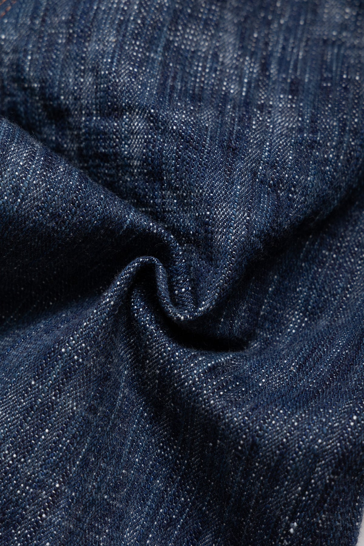 Furthermore, in this denim, two types of textured slub yarns are woven together alternately, creating an exquisite layering of colors. The natural unevenness and depth created by this weaving method possess a special charm not found in other denim, giving it a unique and unparalleled beauty.