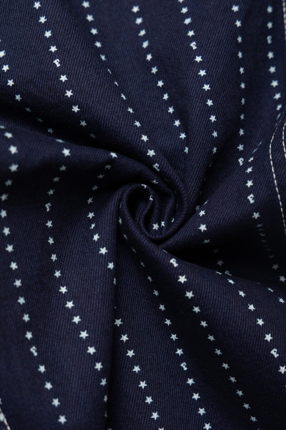 - Classic details such as a V-shaped split-back style, cinch back, and suspender buttons as seen in the early 1900s.