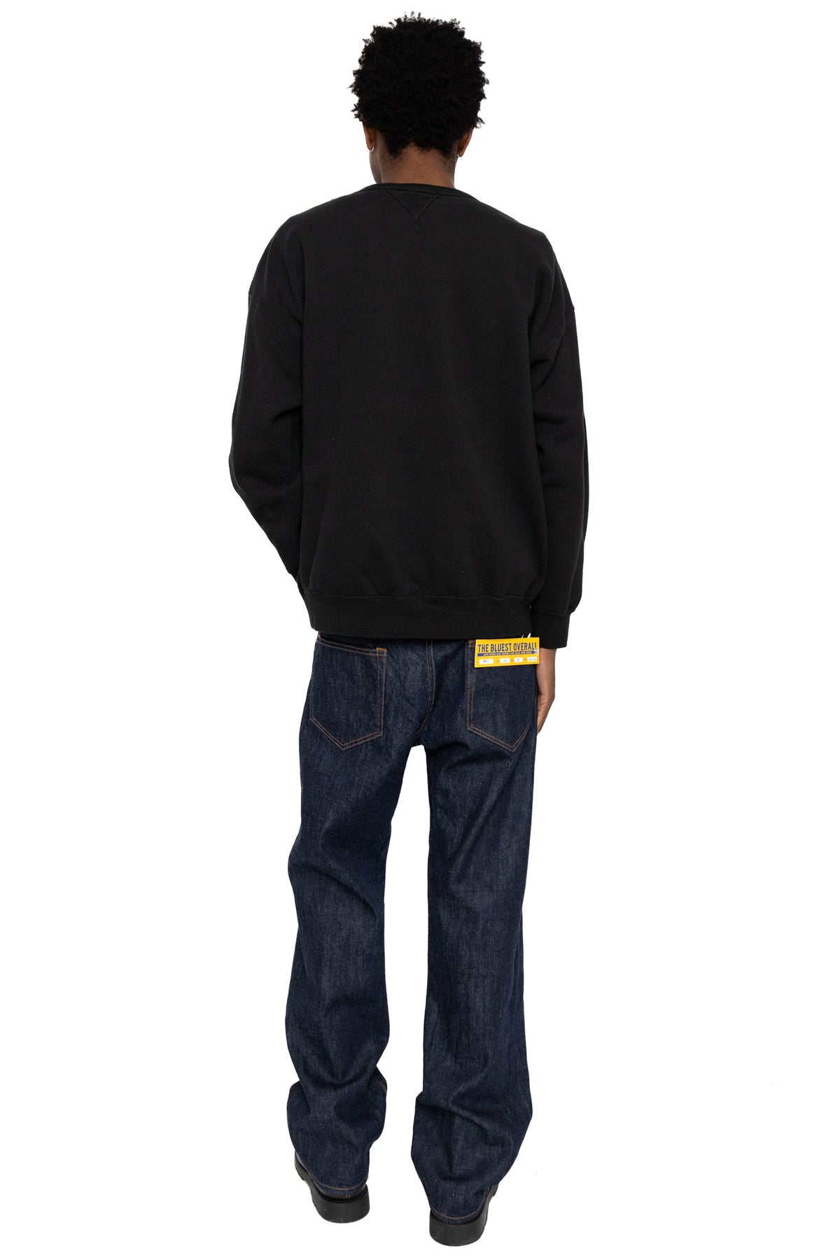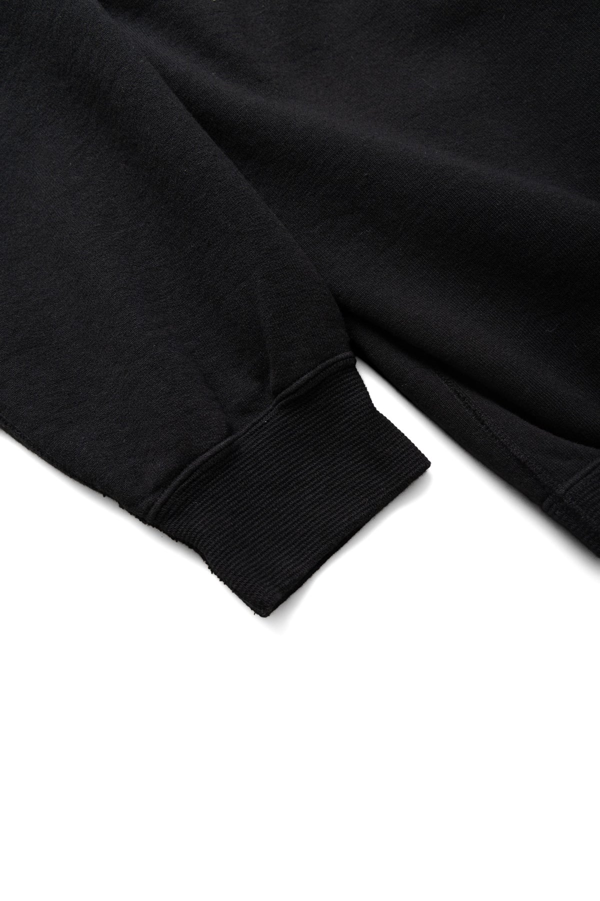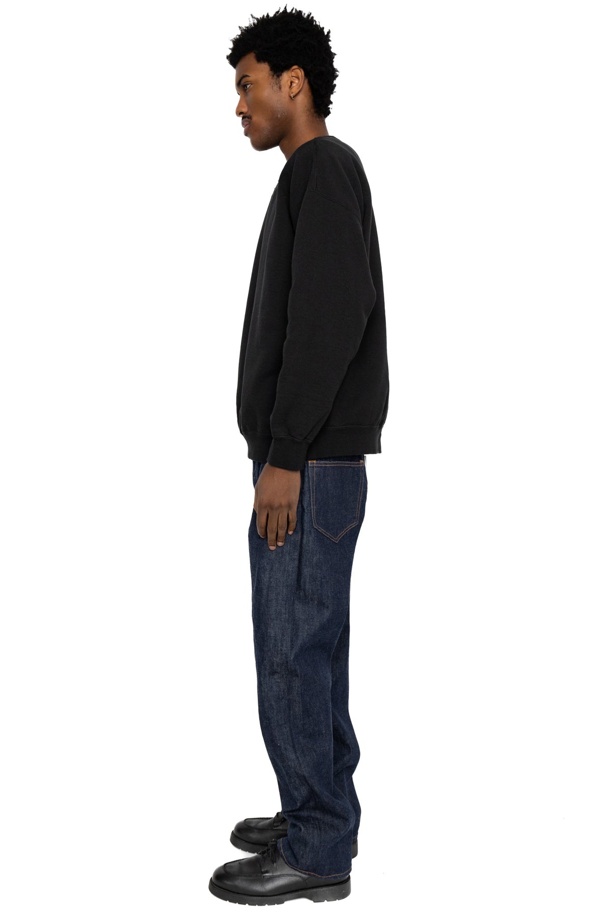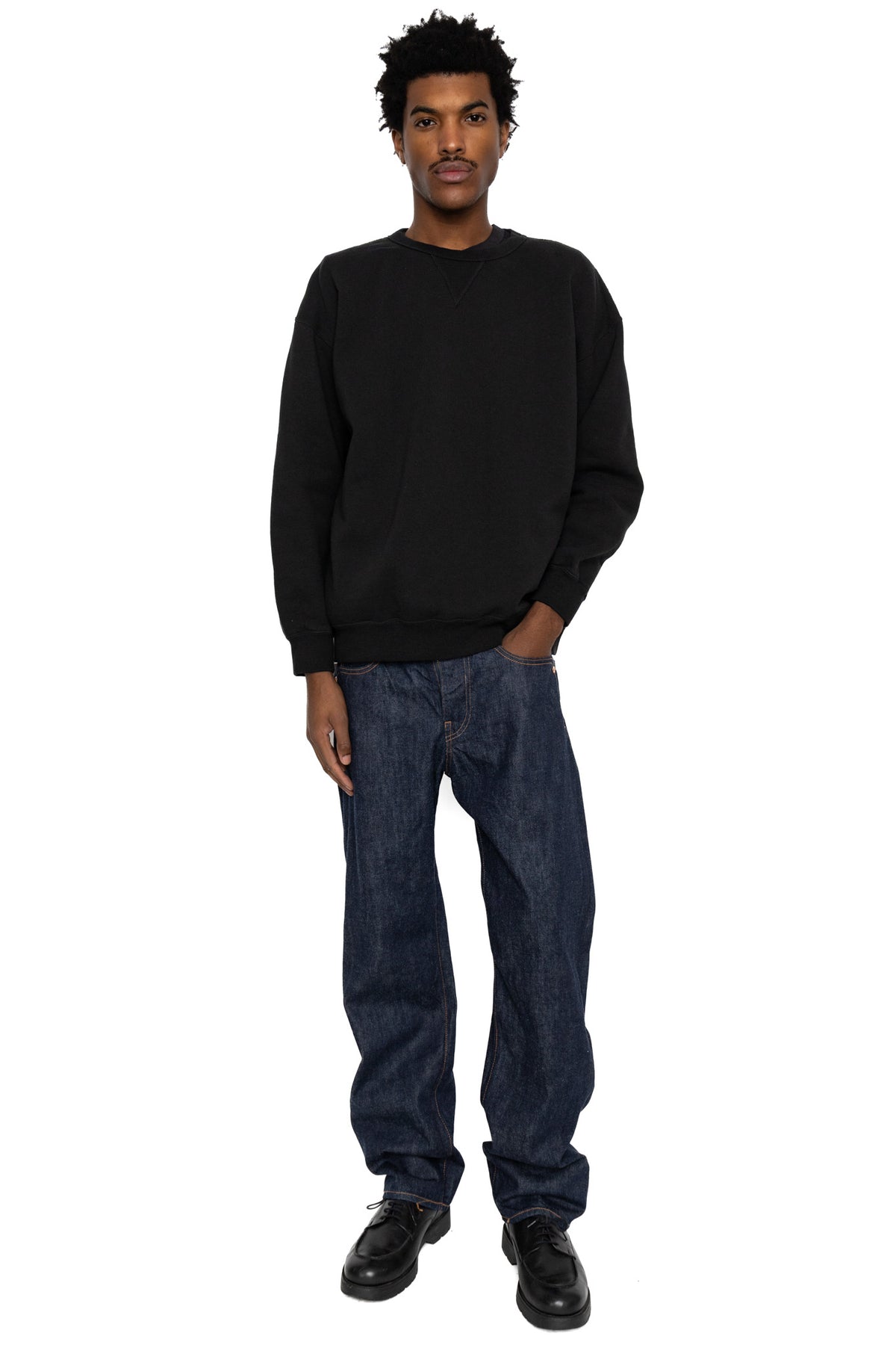 This sweatshirt with a gusset, inspired by a classic design from the 1950s, has been reimagined by THE BLUEST OVERALL with careful attention to detail and a relaxed fit that's uncommon in vintage sweatshirts. The ribbed neckline is constructed with an inserted ribbing technique and features horizontally striped ribbing. It uses a medium-weight original loopback fabric, and the reverse side features a napped finish that gives it a vintage, slightly textured look.