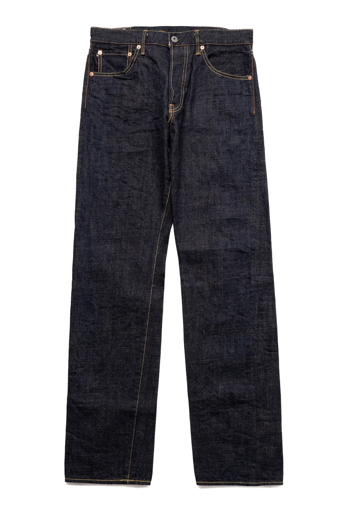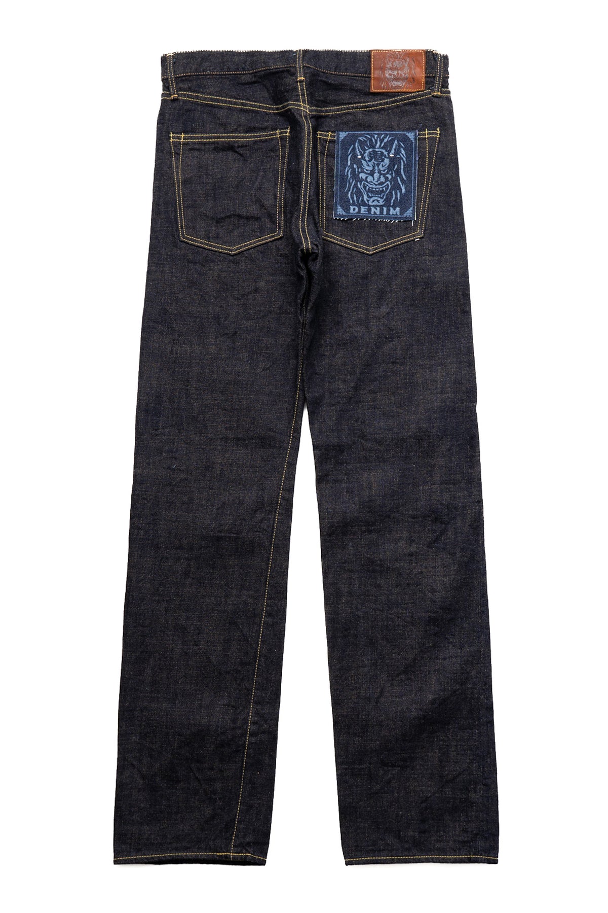 Constructed on a vintage shuttle loom, the 288 from Oni have indigo warp and a beige weft with standard red line selvedge. They feature premium details like copper buttons and a custom leather patch.