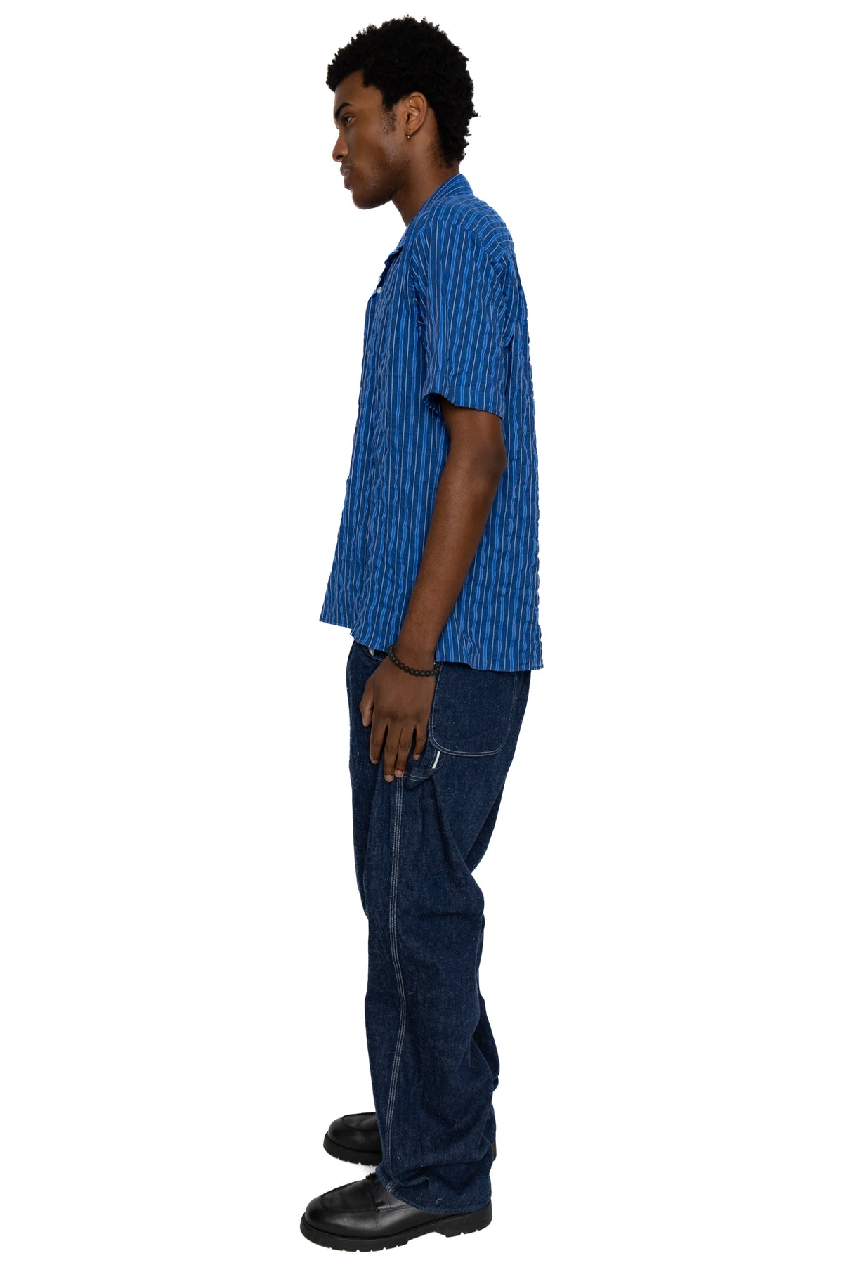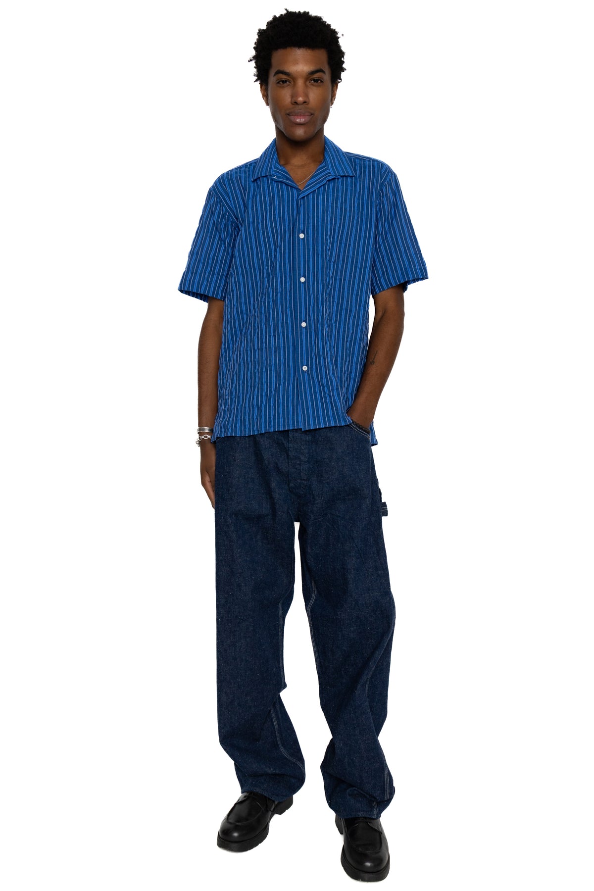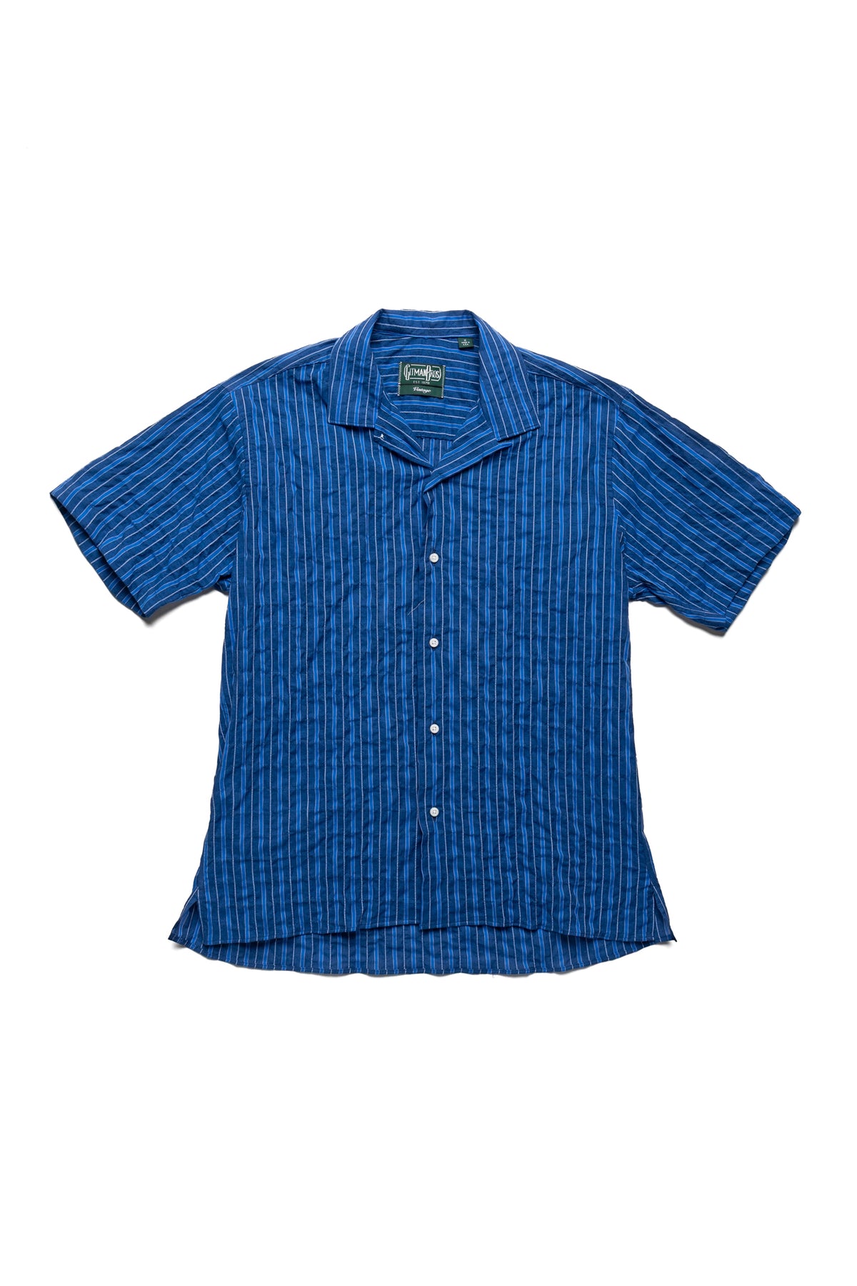 S/S Camp Shirt - Indigo Organic Japanese Awning Stripe