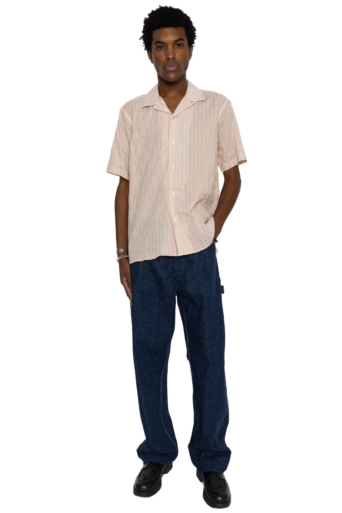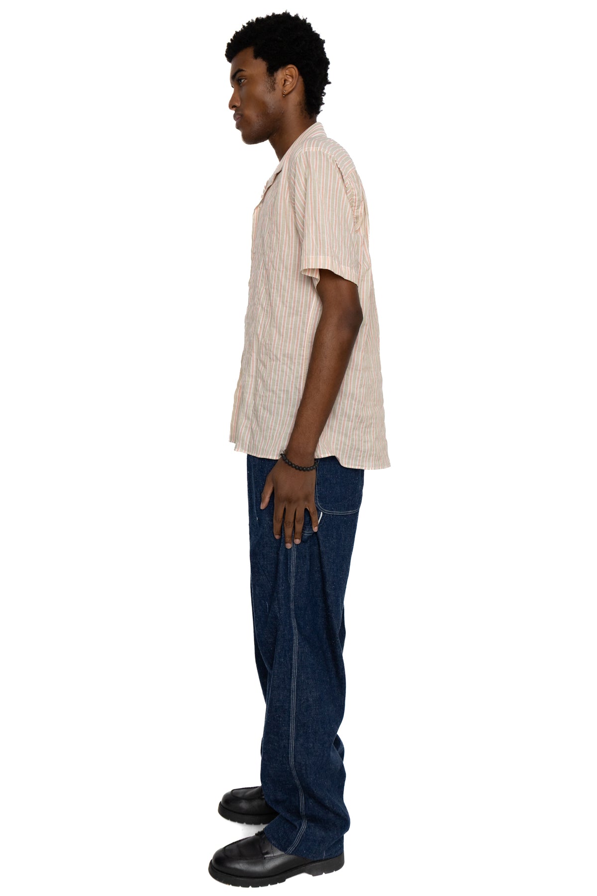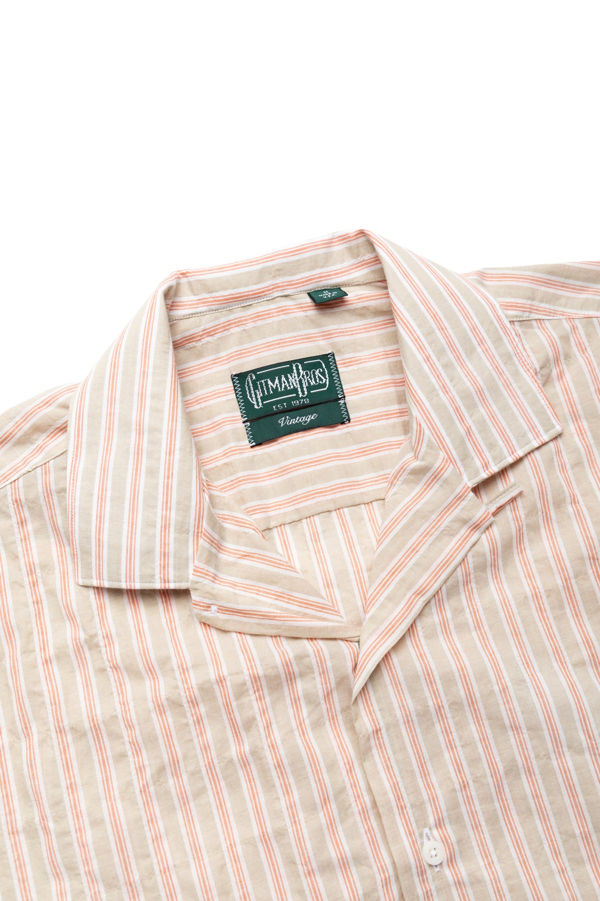S/S Camp Shirt - Tan Organic Japanese Awning Stripe