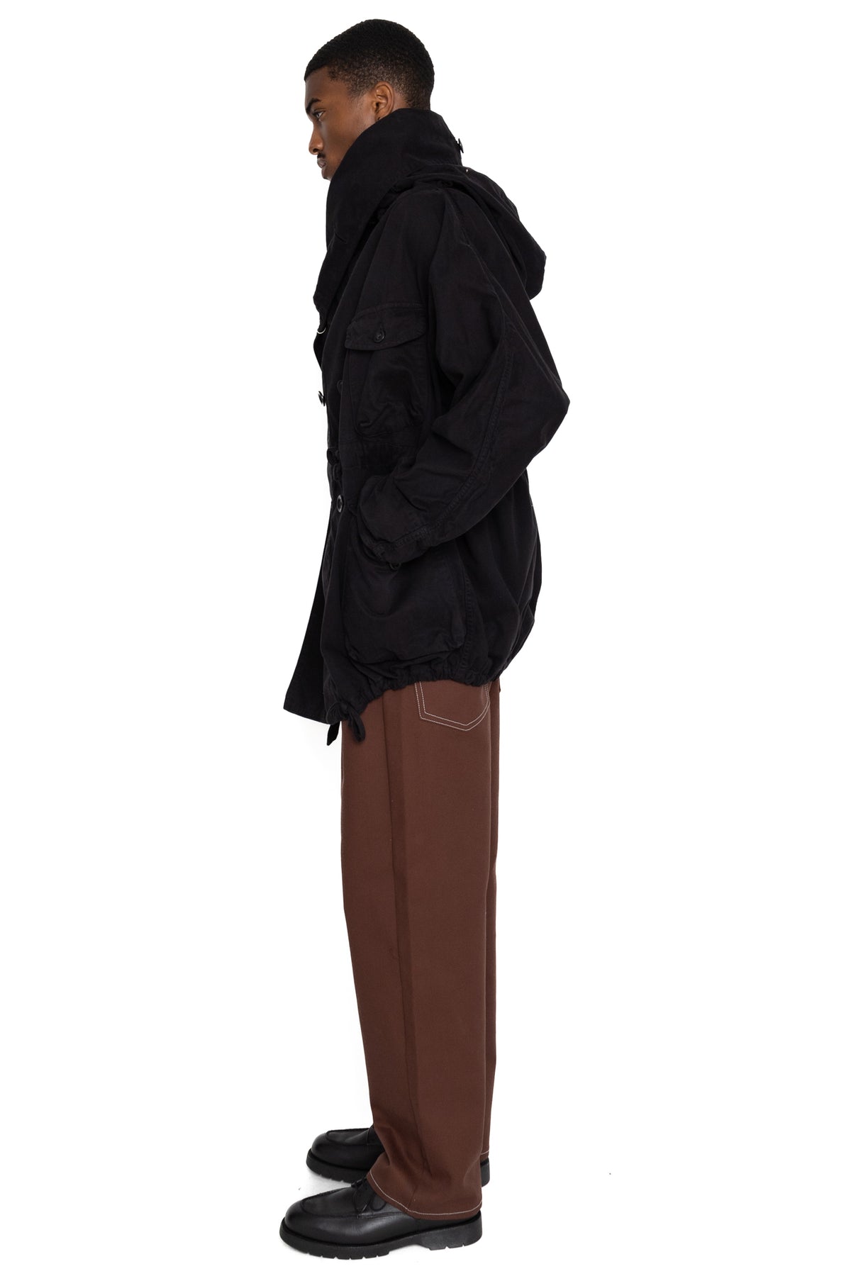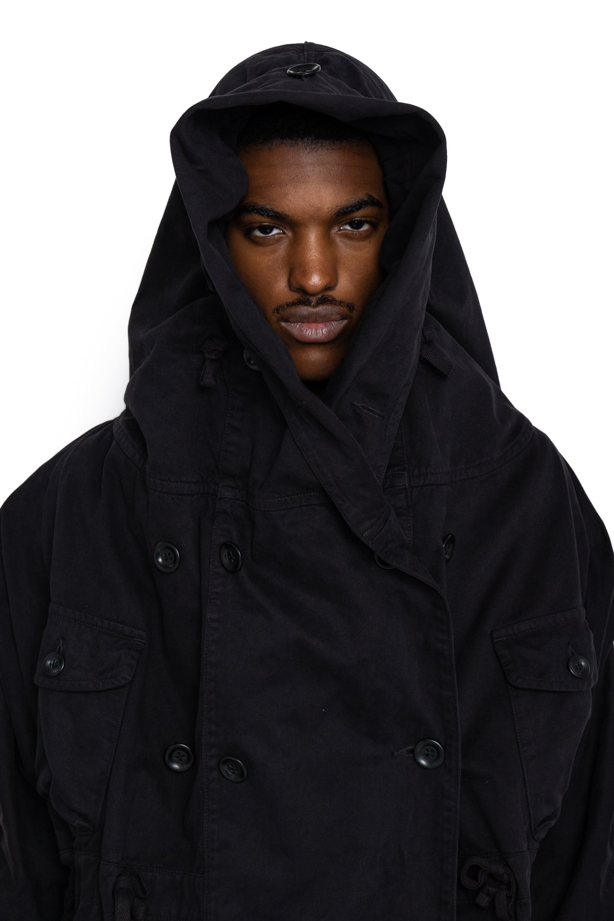 Katsuragi Cotton Ring Coat - Black