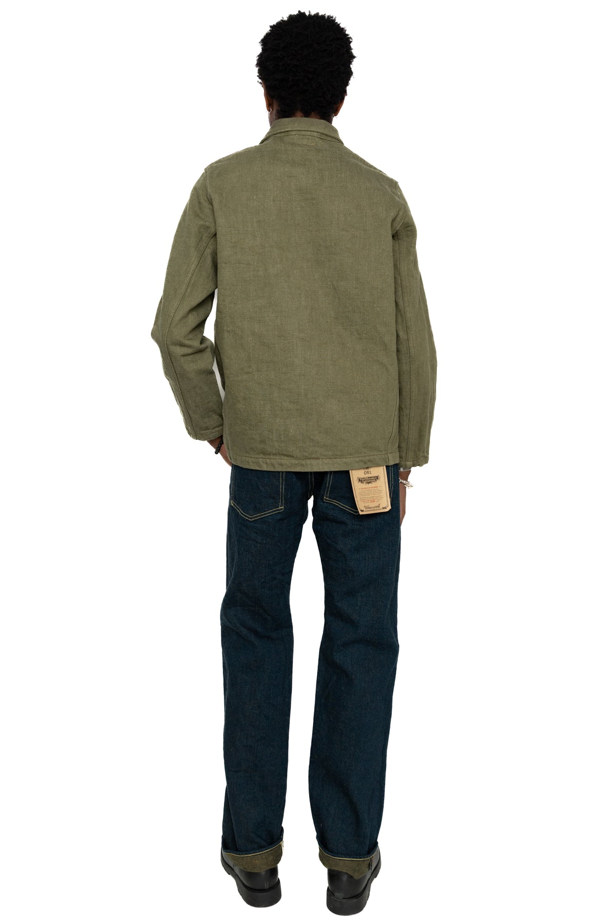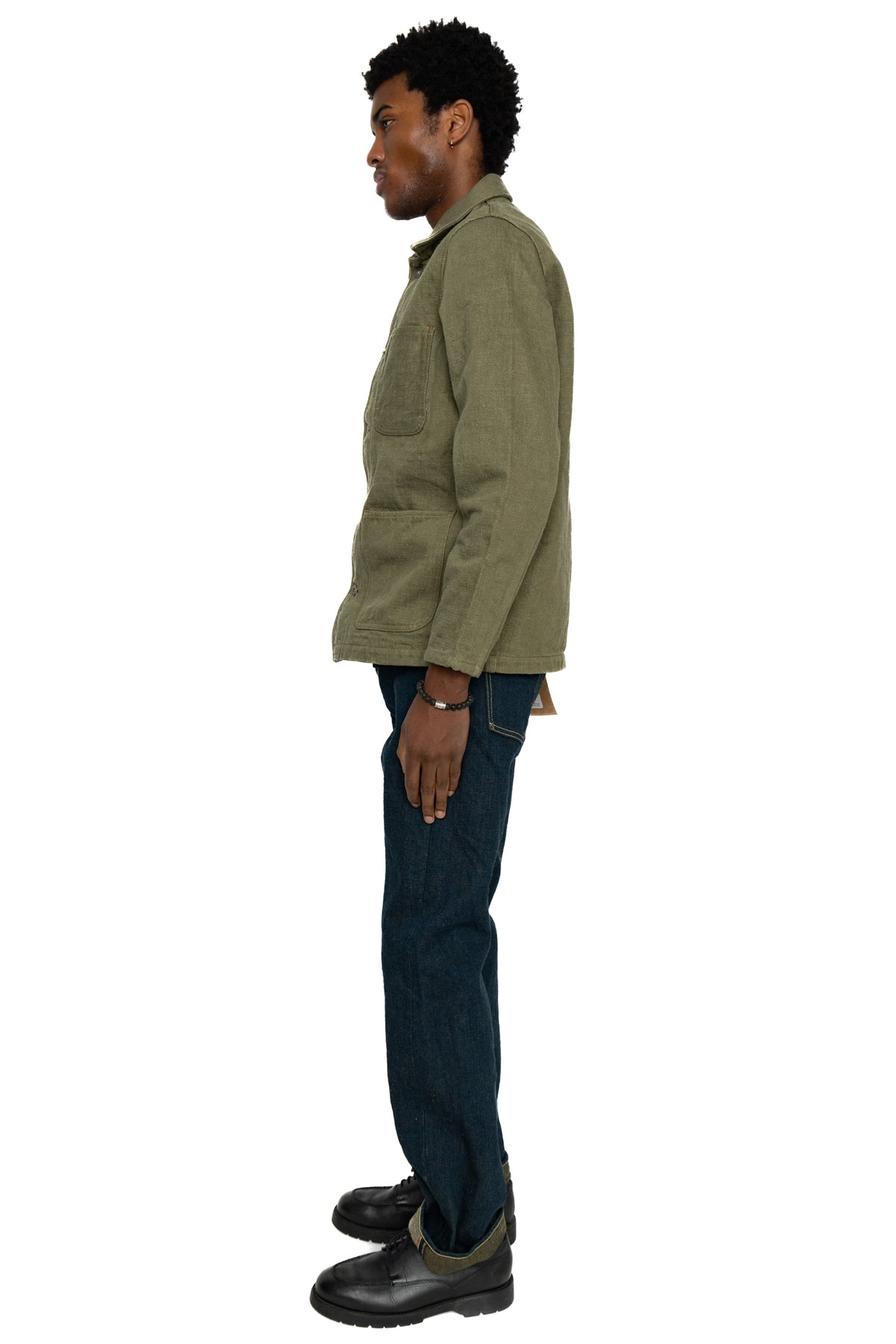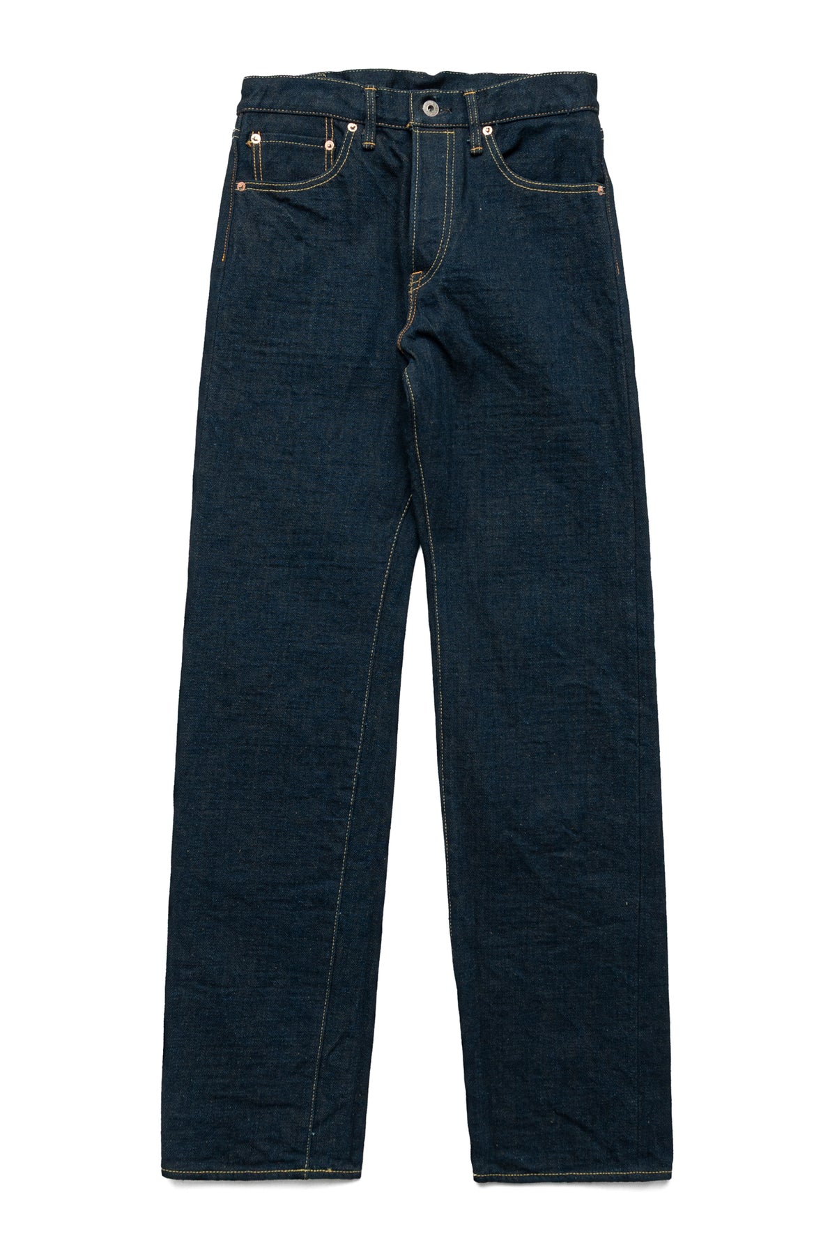 ONI's specially developed Secret Denim features warp yarns that are rope dyed leaving the cores undyed to give way to contrast fading, and weft yarns that are dyed Beige for a color reminiscent of cotton found growing in the wild. This gives the denim a rustic dark color while still maintaining a vibrant indigo blue. This particular model uses an indigo dye with a Green Cast which fades to light blue with greenish hue. The low tension weave gives this heavy denim a soft hand with an irregular and slubby texture. There are many other intricacies to this denim that need to be seen and felt in person to fully appreciate and most of the special techniques involved with creating it's unique look, texture and feel are held secret, hence the name “Secret Denim”.