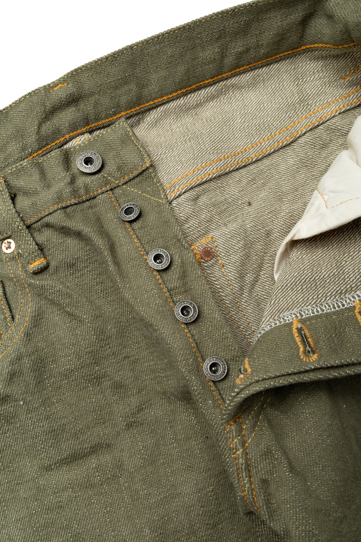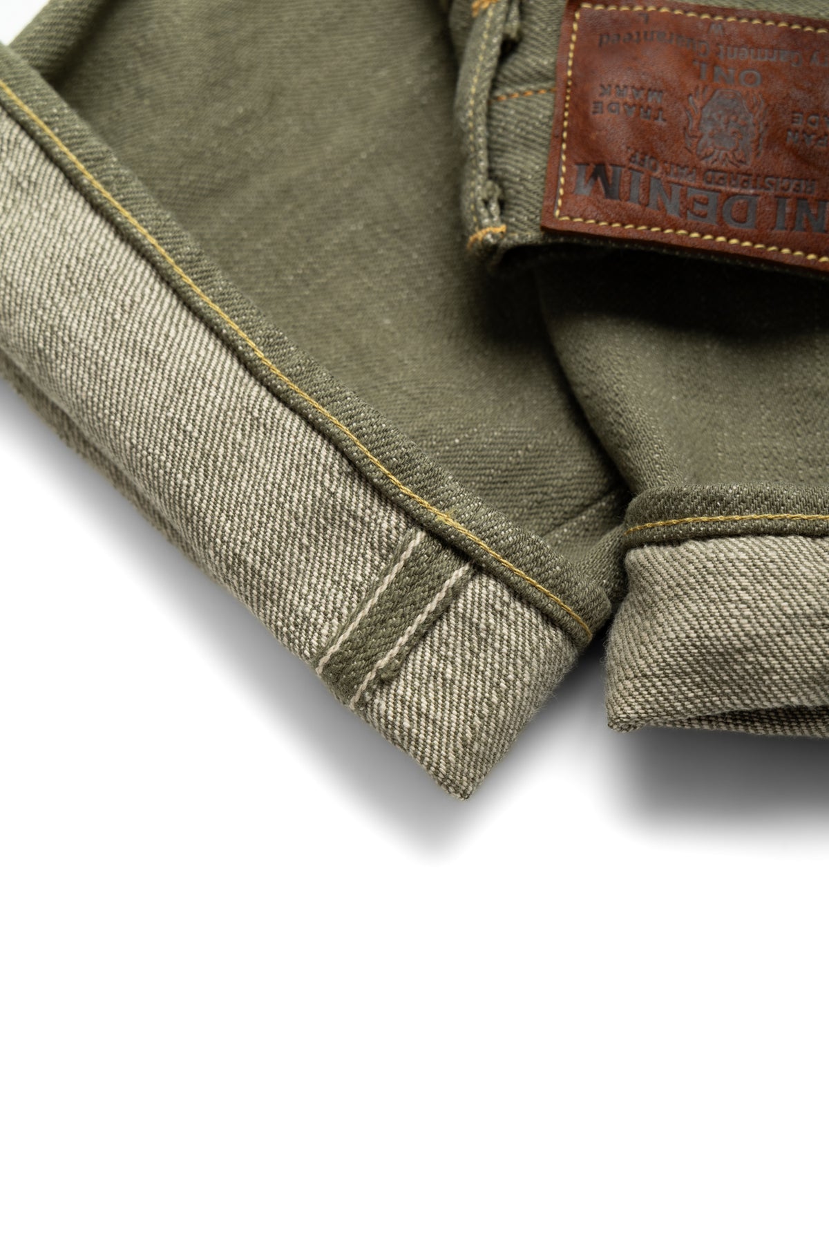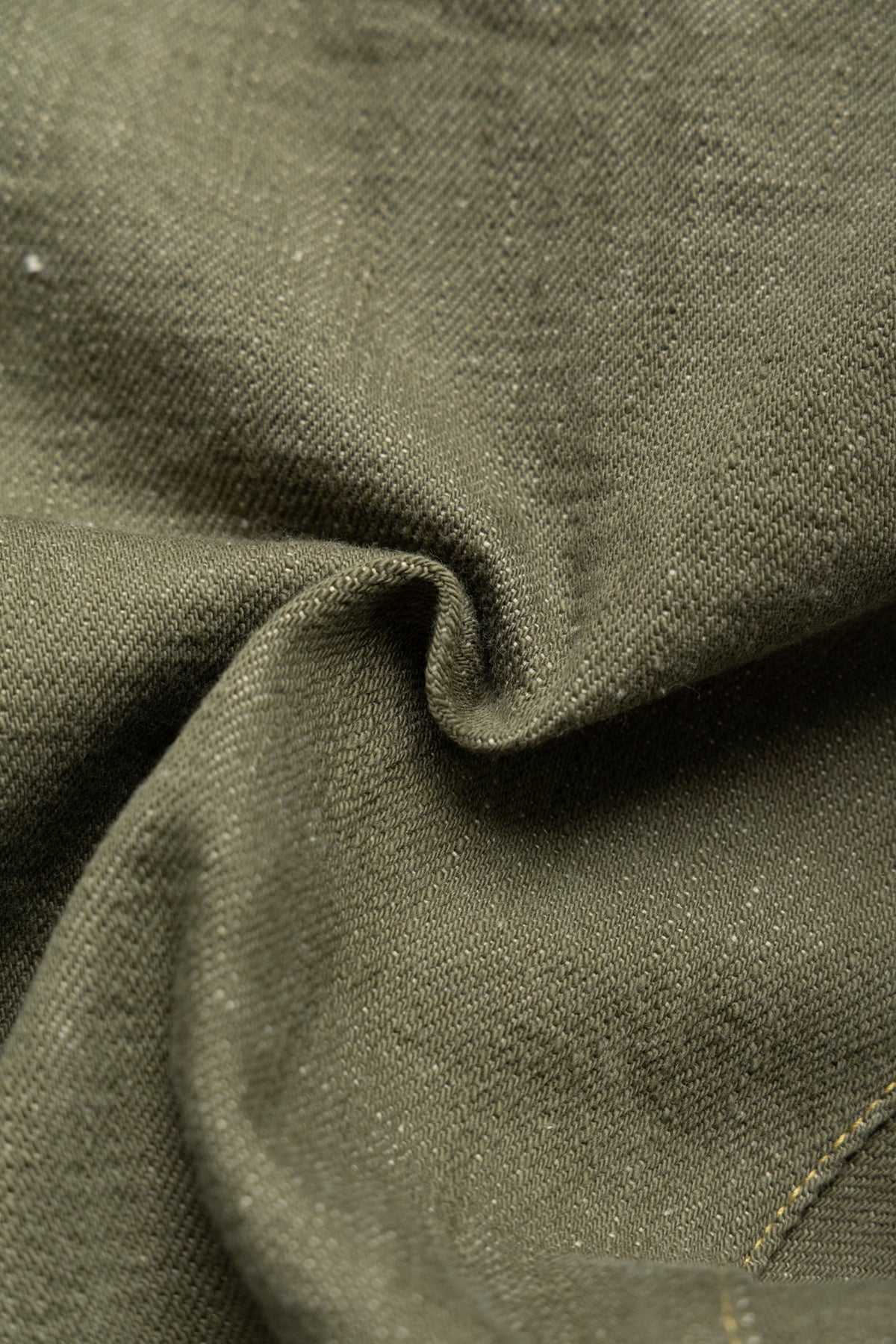 Rugged and crunchy denim, woven with low tension using specially twisted thick yarns for this fabric.