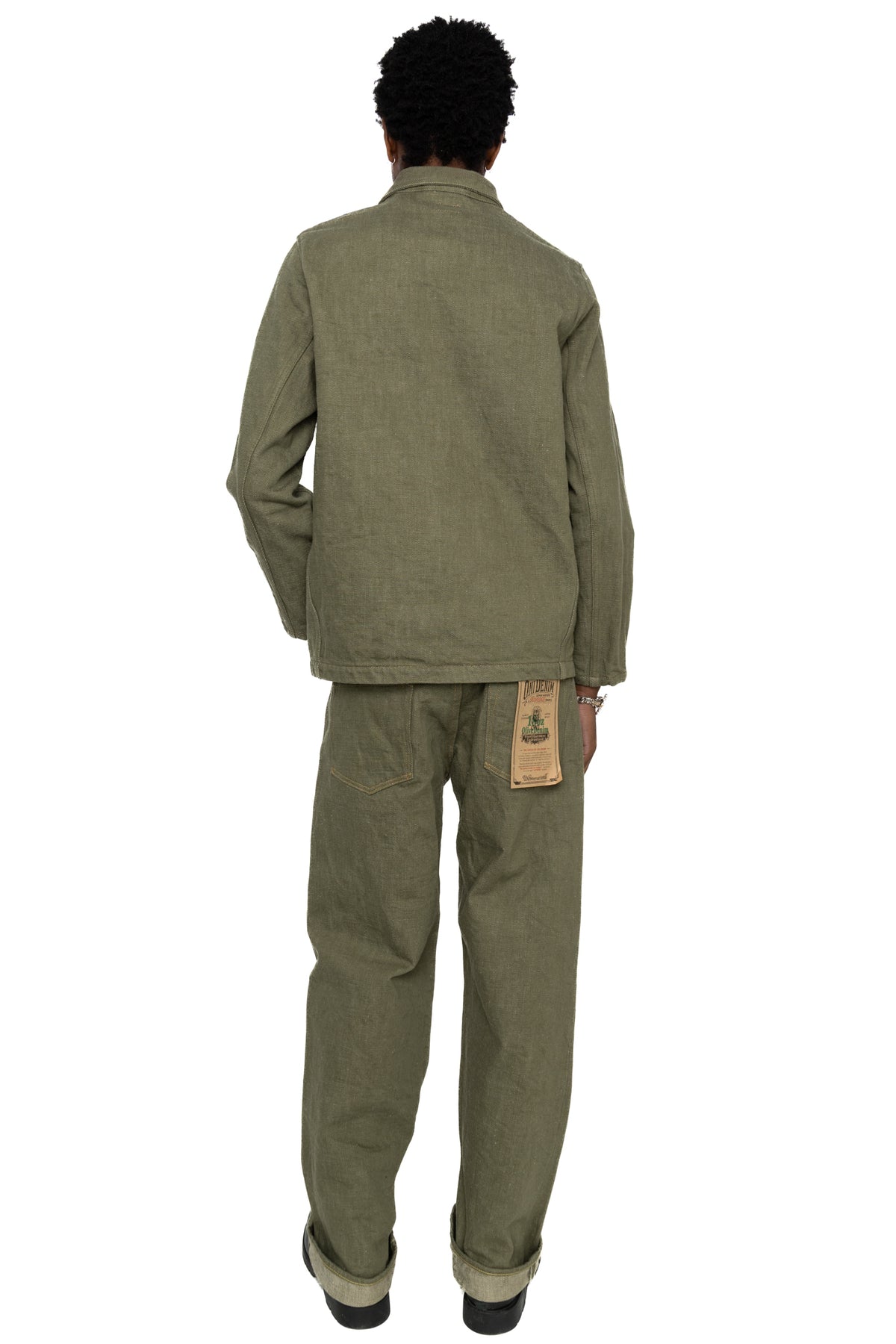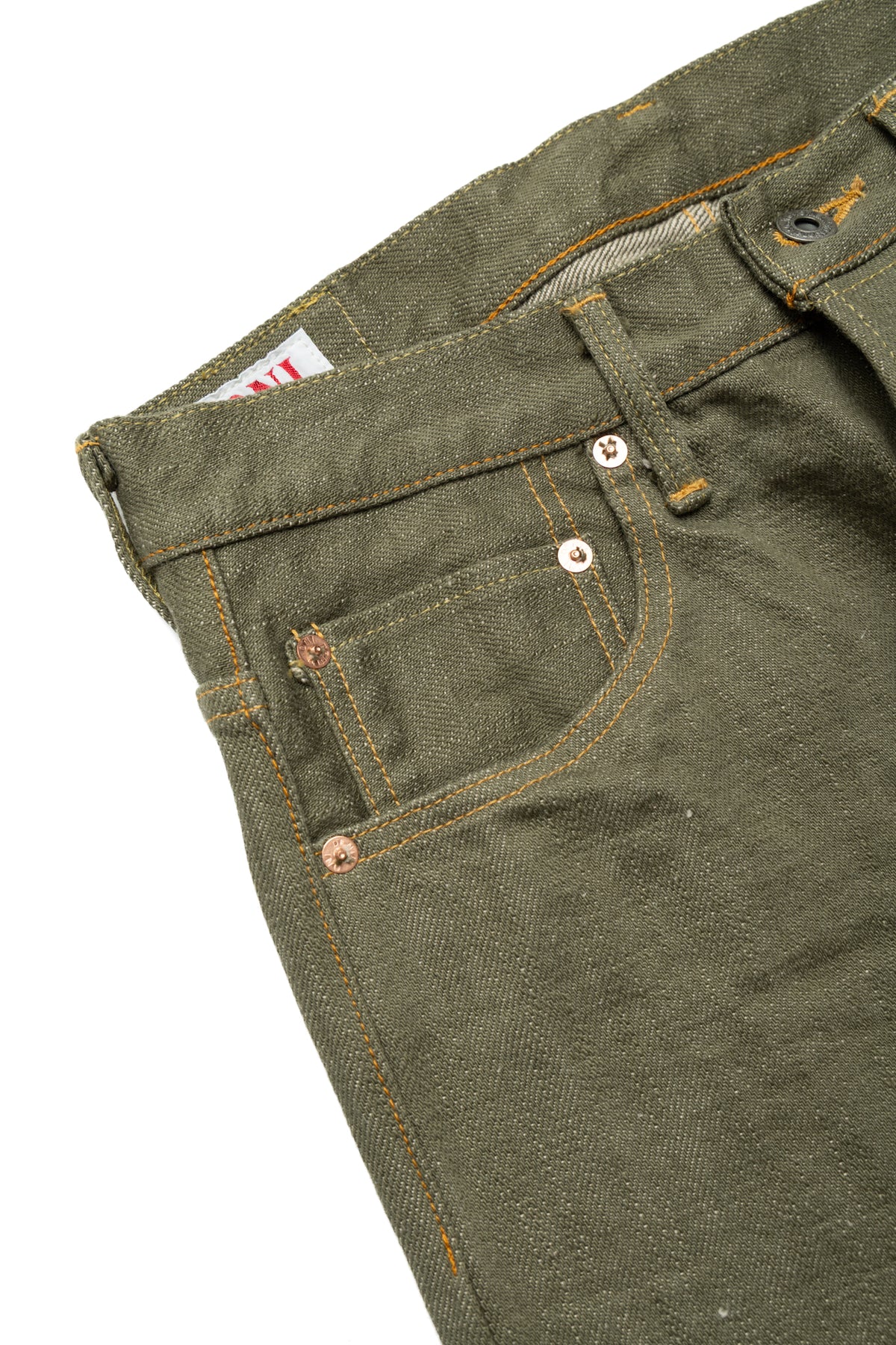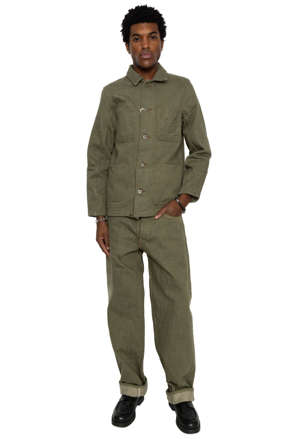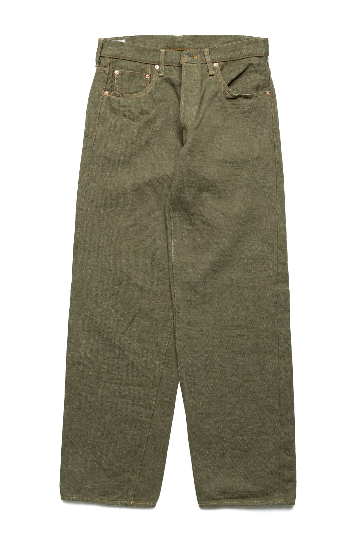 Rugged and crunchy denim, woven with low tension using specially twisted thick yarns for this fabric.