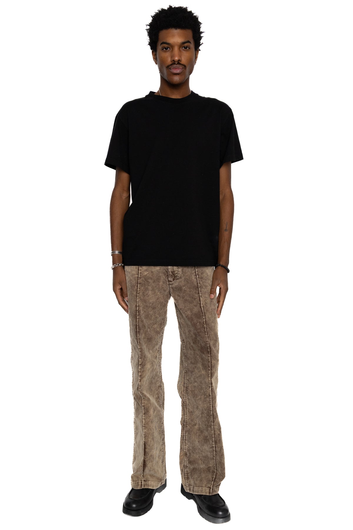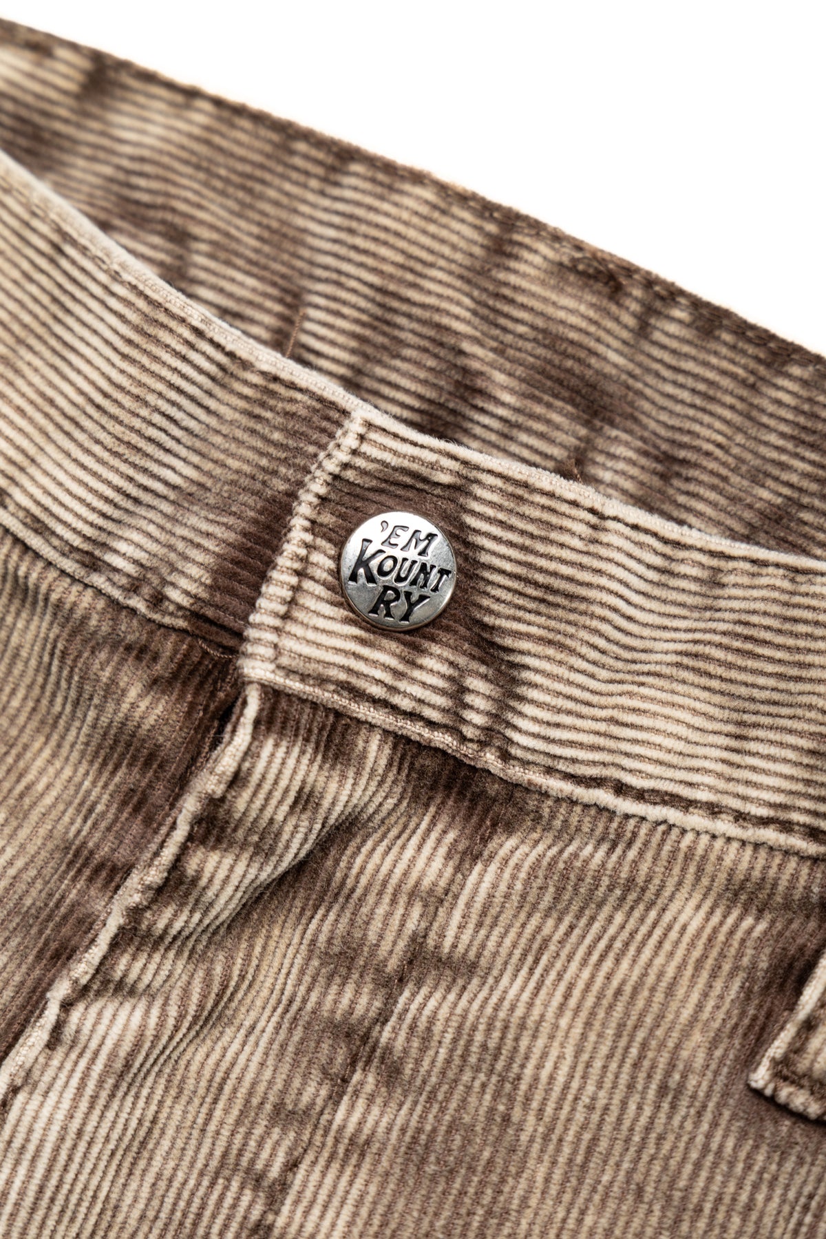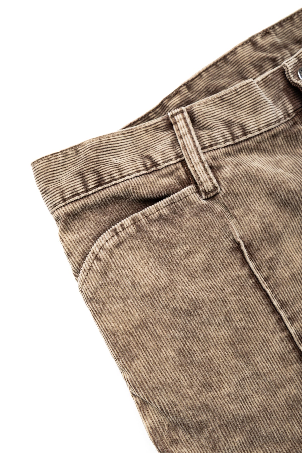 - 14-wale corduroy fabric with a distinctive, uneven dye finish.