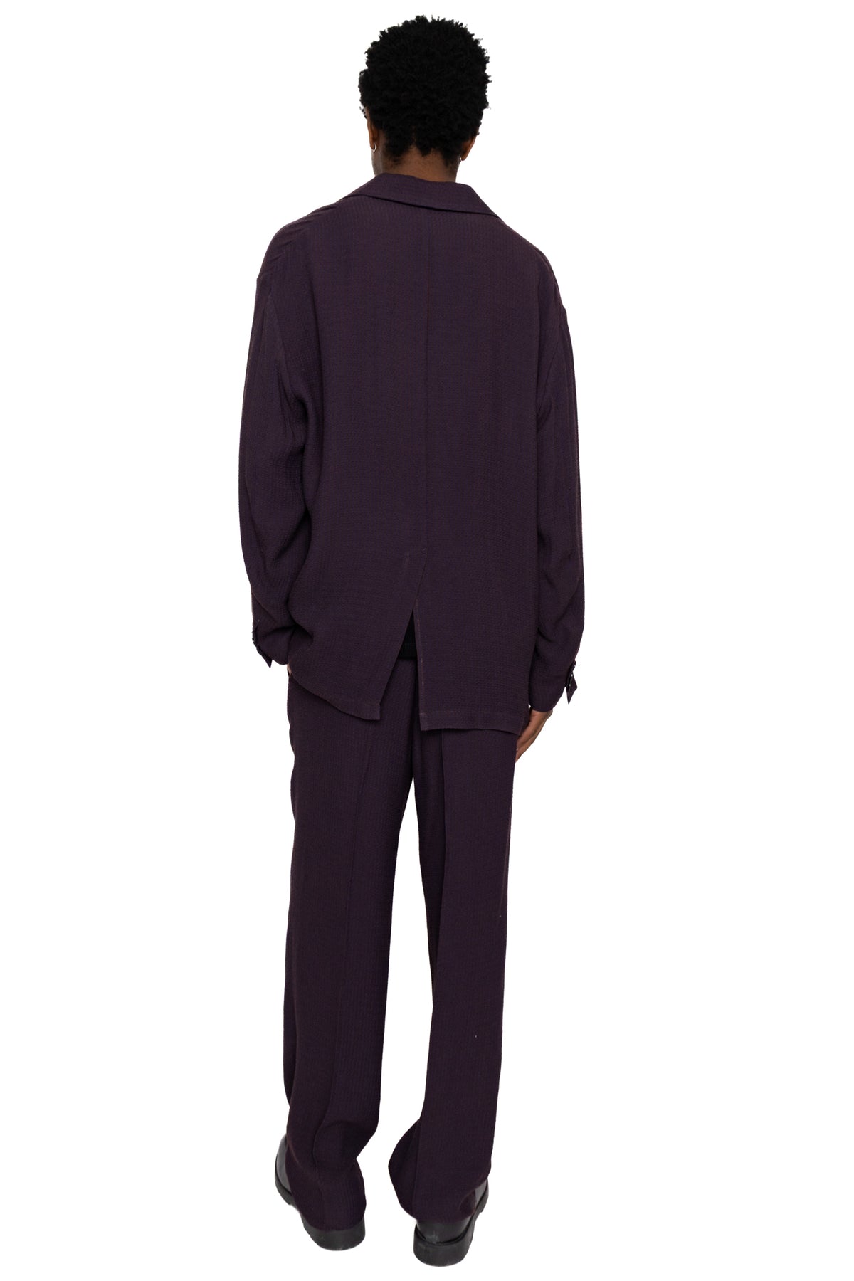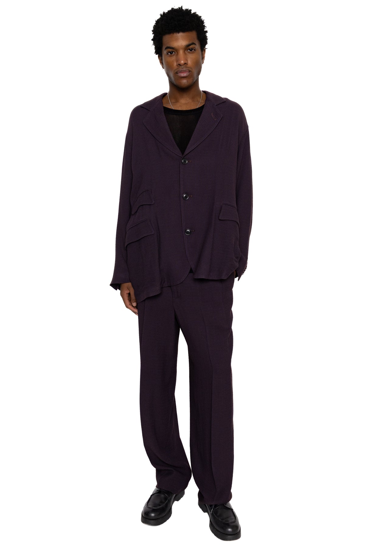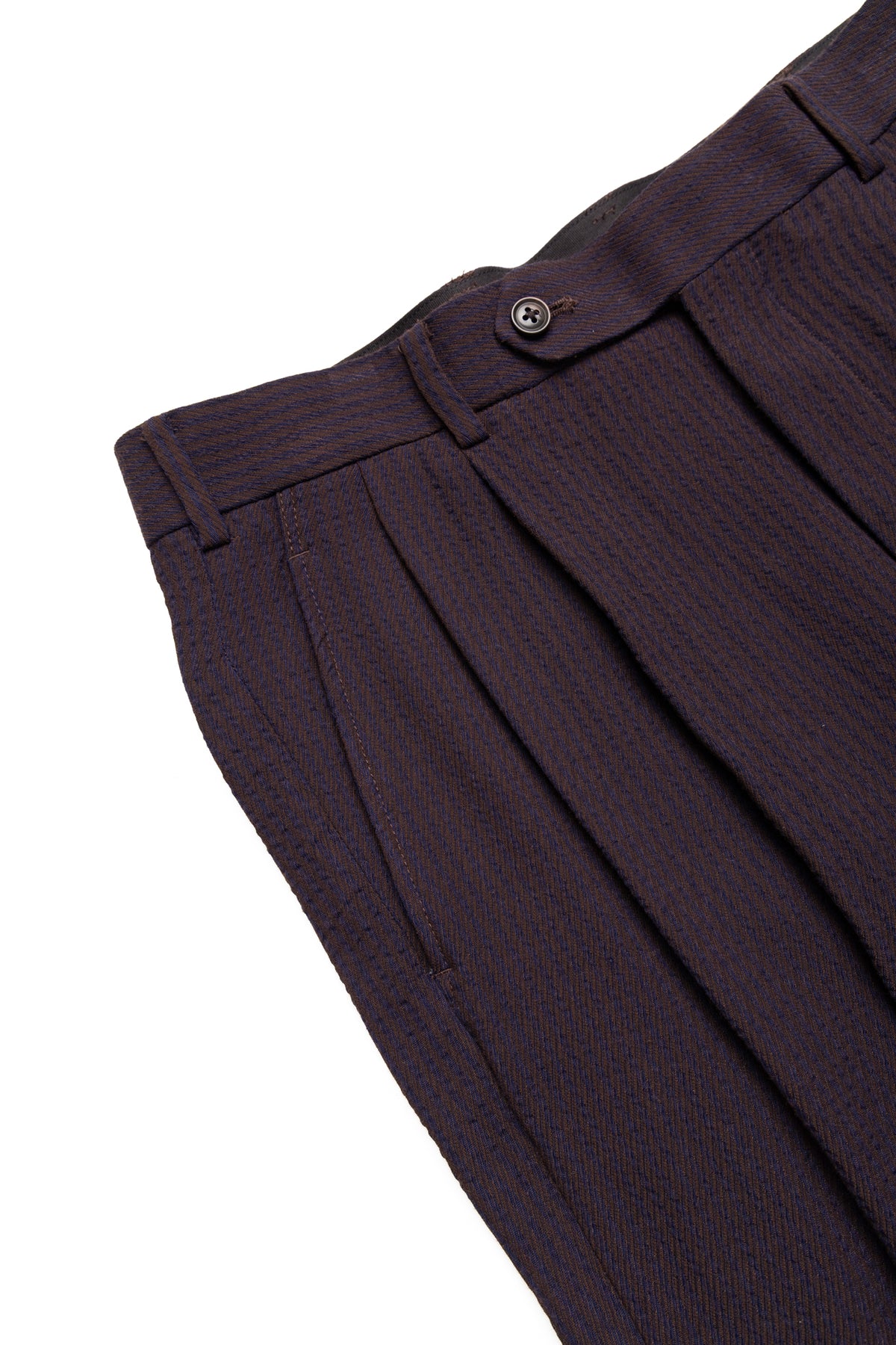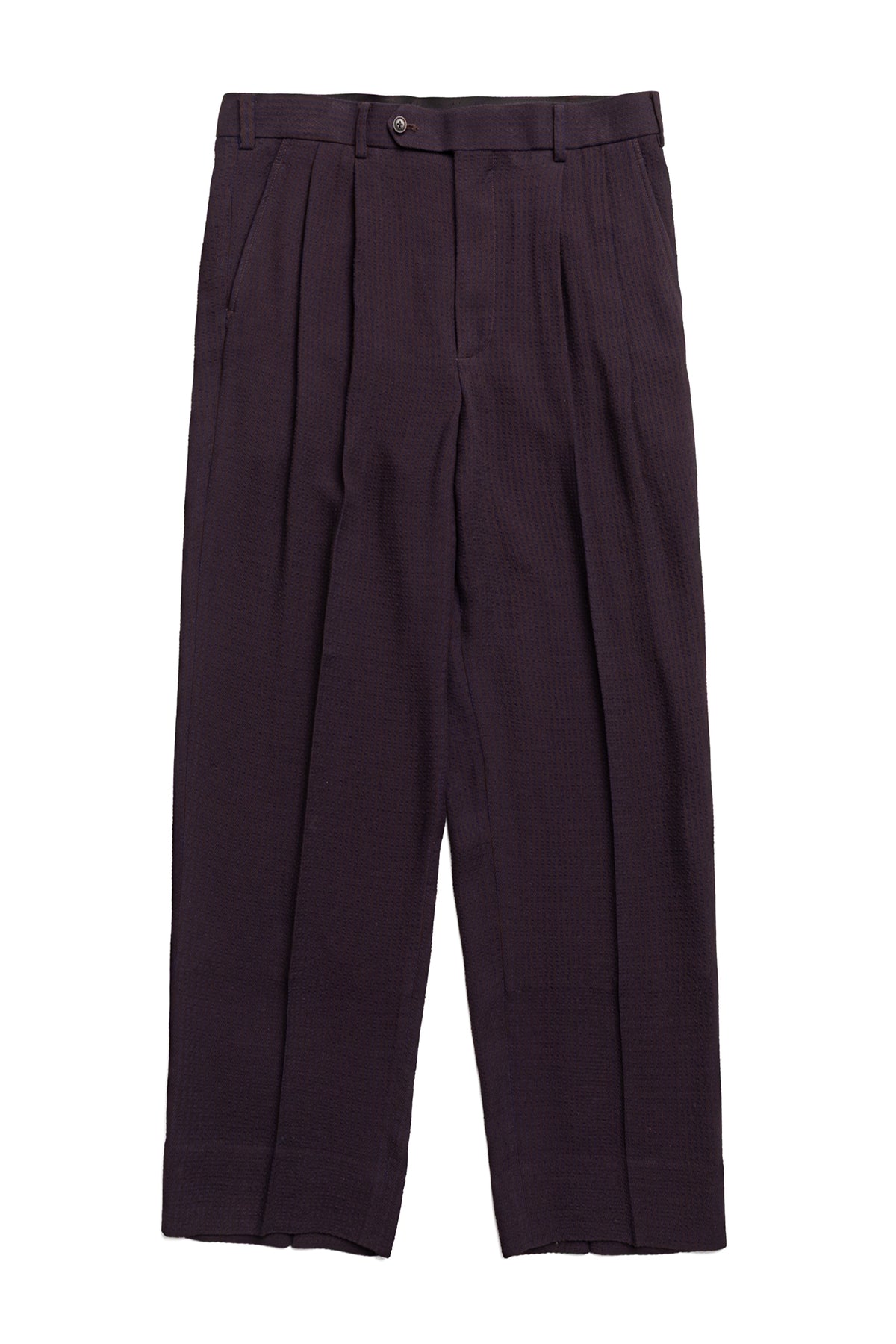 - Wide tapered fit created by two tucks at the waist