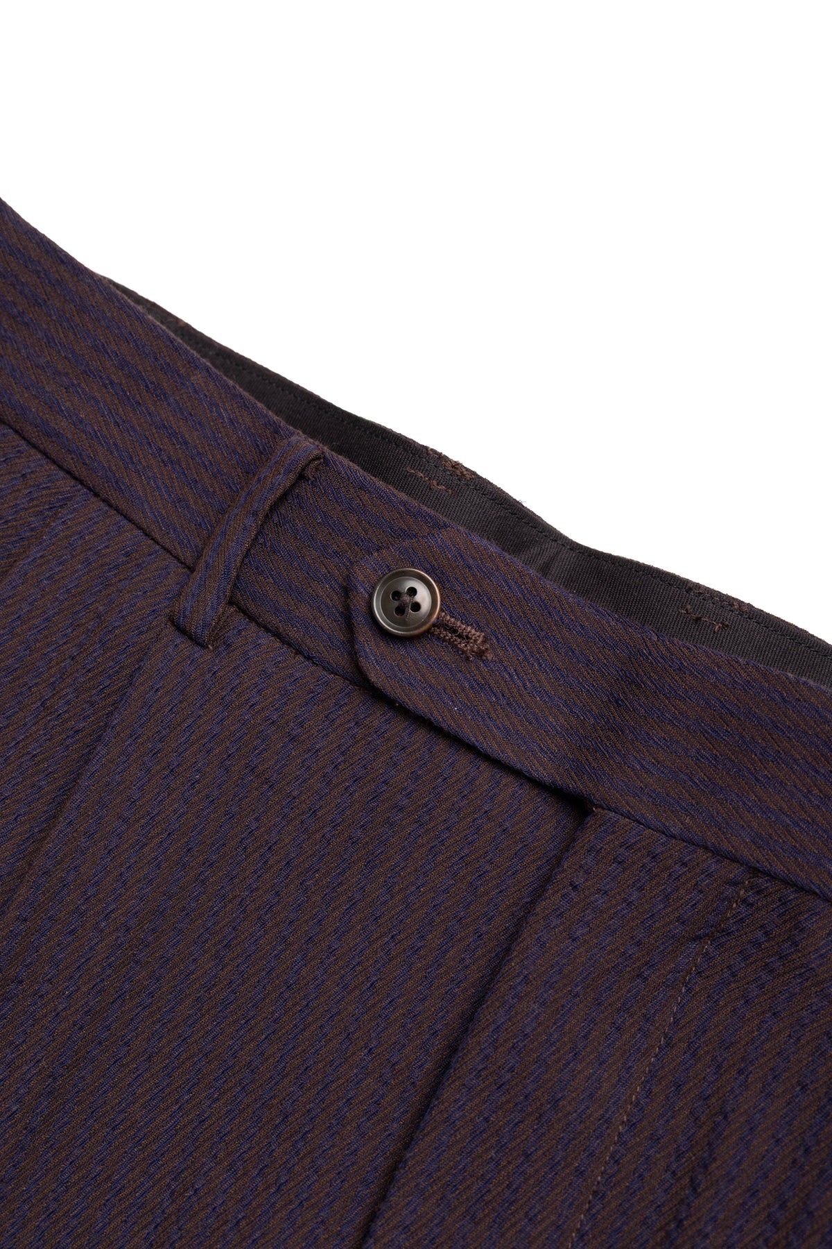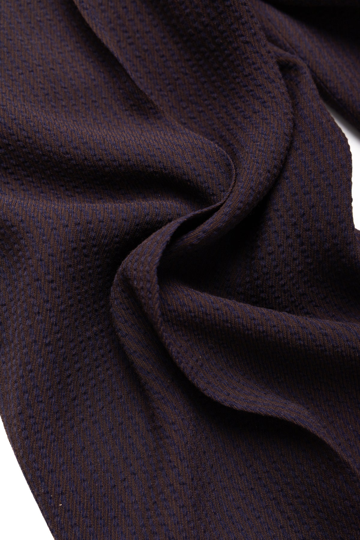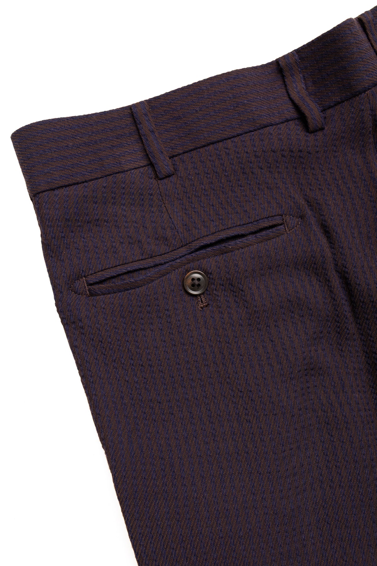 - The striped twill fabric is a blend of rayon and acetate, making it smooth and lightweight to wear.