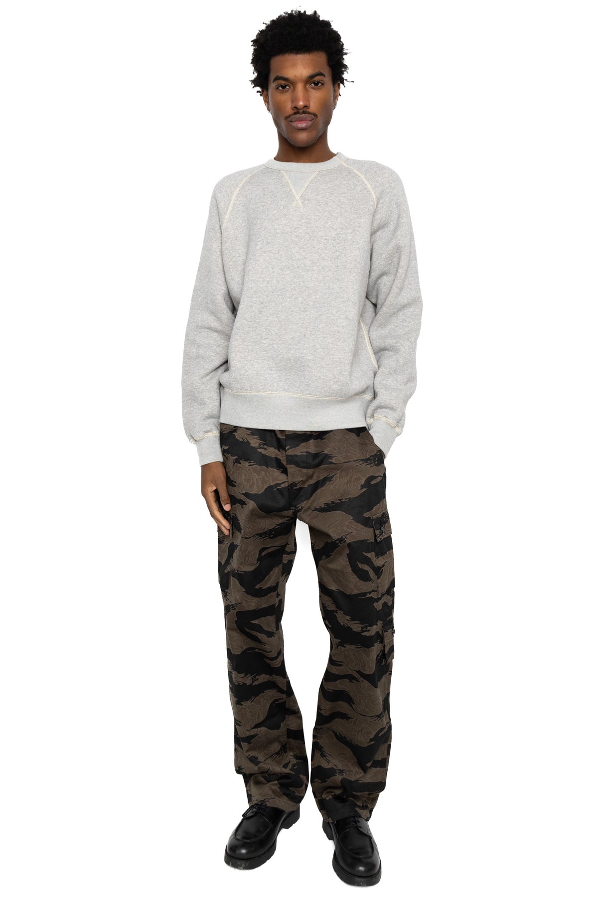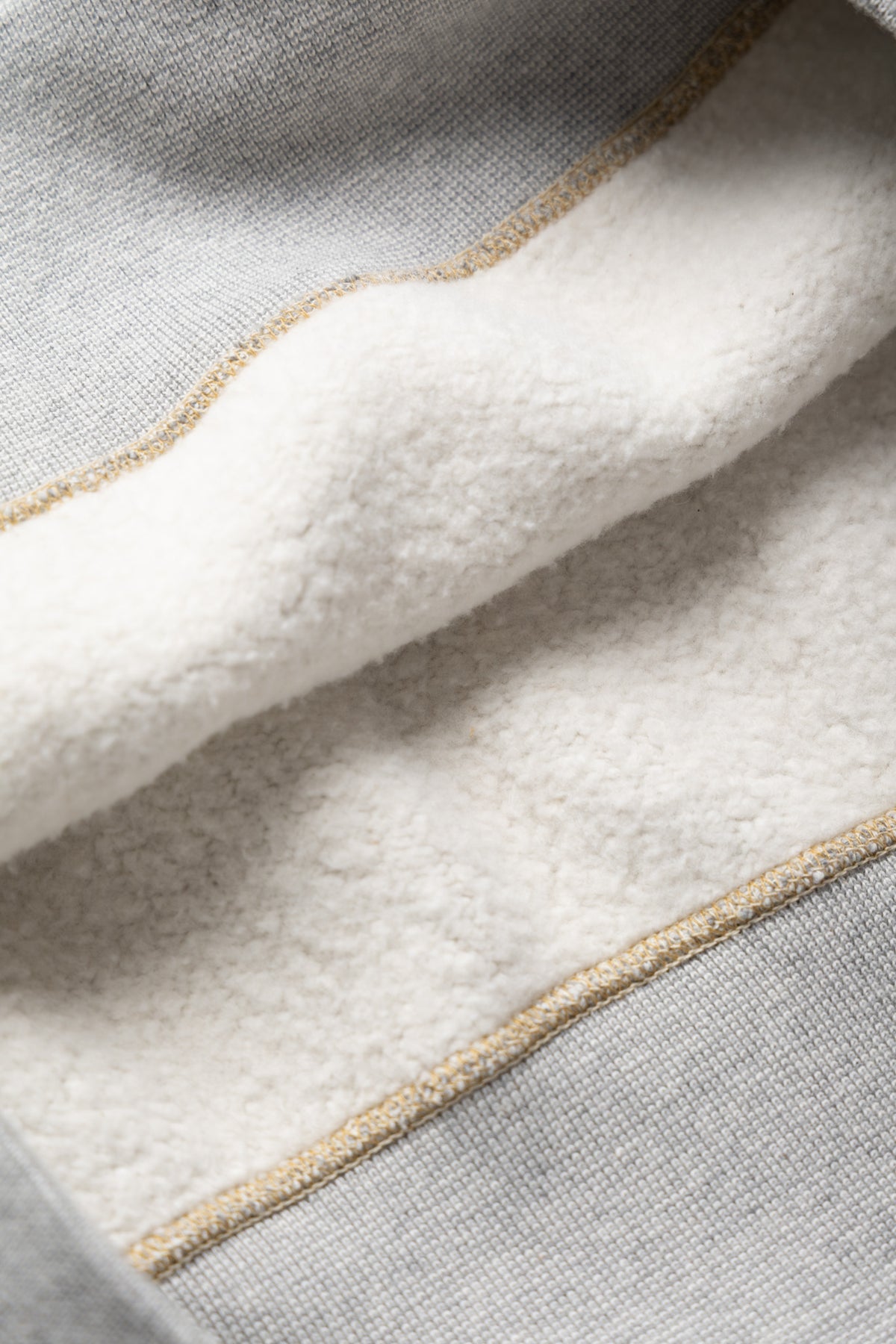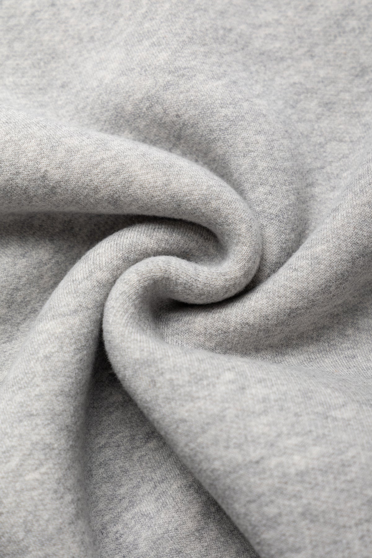 The fabric inherits the unique fluffy texture of the Tompkins sweatshirt, while also possessing the beautiful loop structure characteristic of sinker machines and excellent fabric stability that resists deformation after shrinkage and wear. It overcomes the disadvantages of older knitting machines, such as fabric distortion and unstable shrinkage rates after washing, resulting in an evolved original brushed fleece. The texture, reminiscent of vintage sweatshirts, develops more character with age and wear, and the moment you put it on, you'll experience the unique fluffy, warm, and comfortable feel of this special fleece fabric.