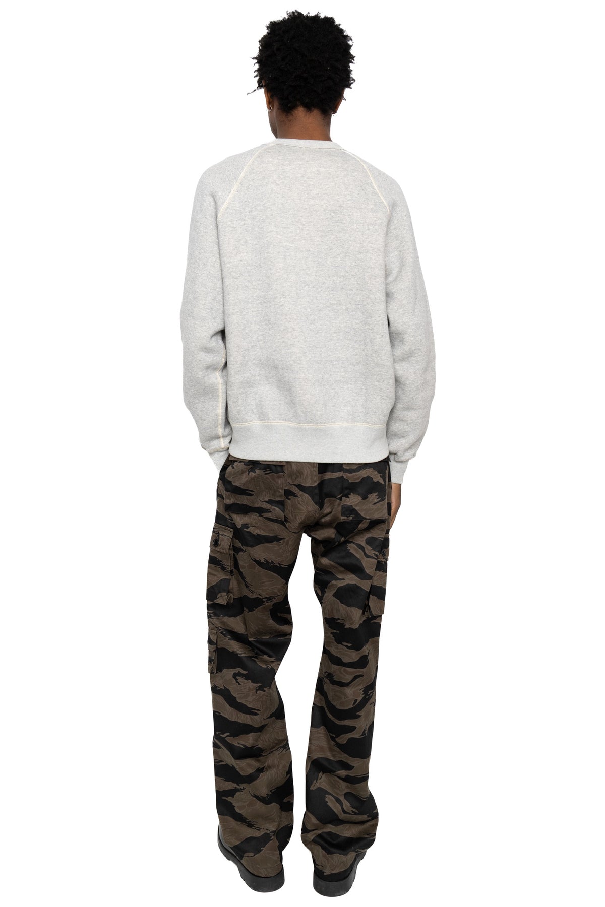 Crewneck Sweatshirt Super Fluffy Knit Raglan V-Gusset - Old Melange Grey