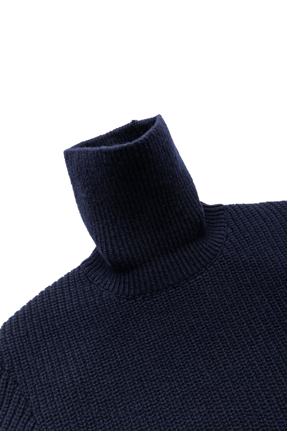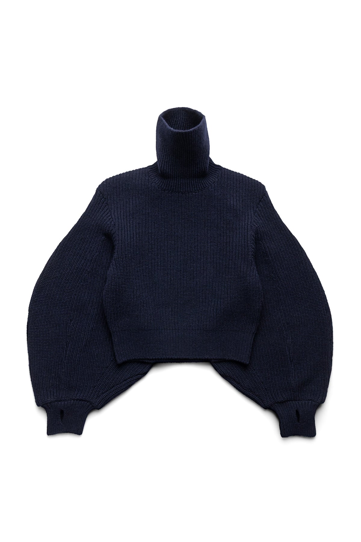 - A low-gauge, high-neck sweater crafted with a rib knit.