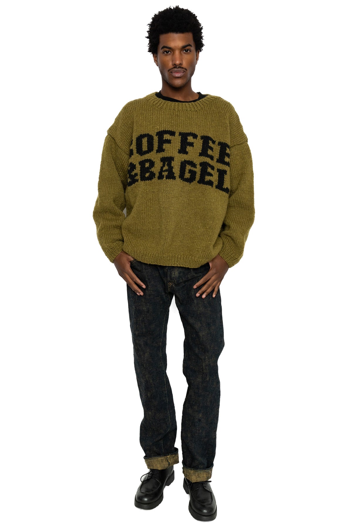 Handmade "Coffee & Bagel" Crewneck Knit - Olive