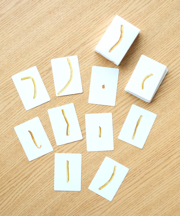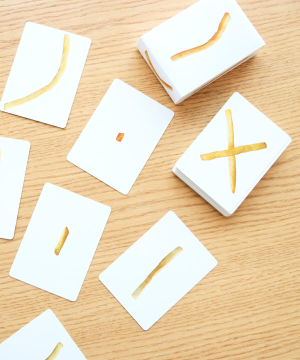 Card game "Potato Game" by artist Masanao Hirayama. The rules are simple, just like in Concentration, just flip it over and find the same shaped french fries! It's a simple yet difficult card game