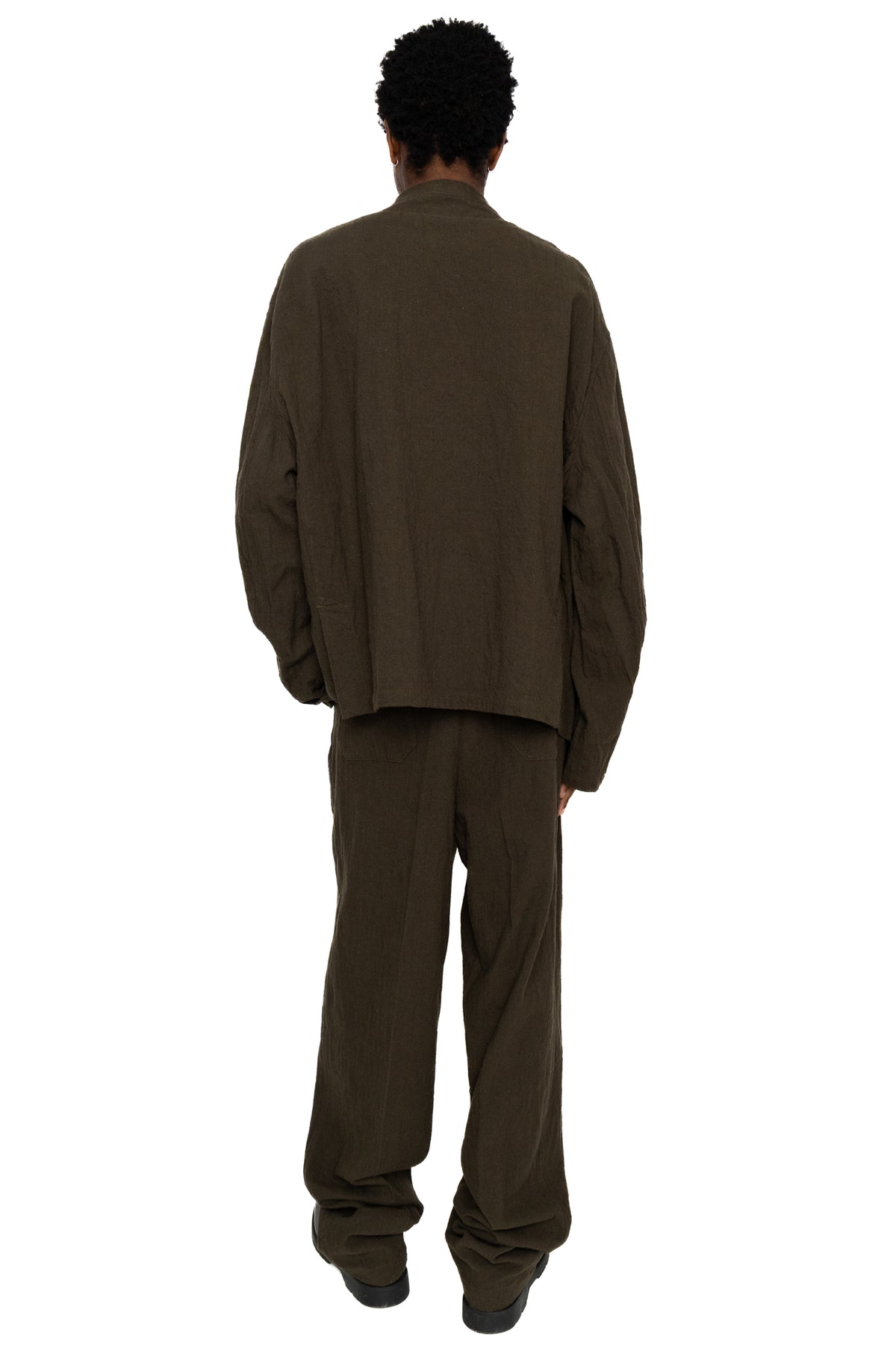 Stand Collar Uncon Jacket Slub Cloth - Olive