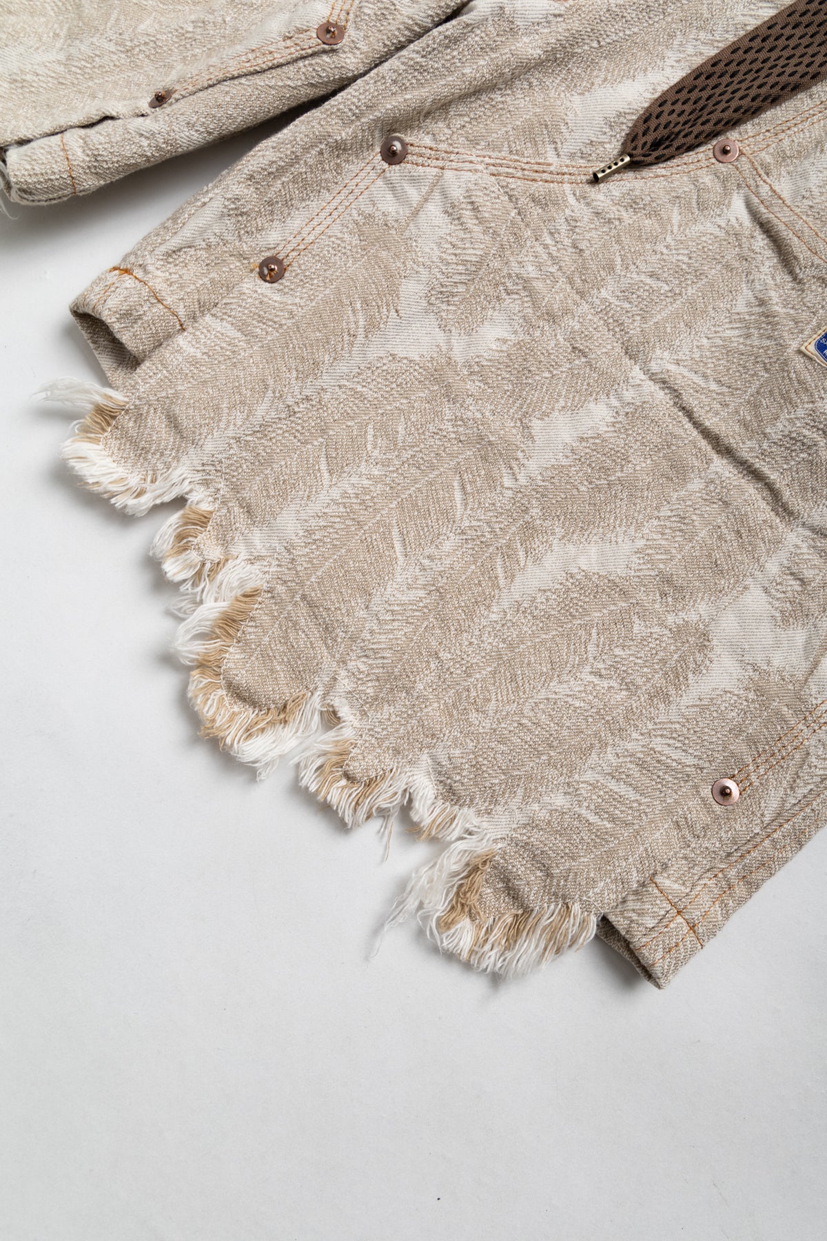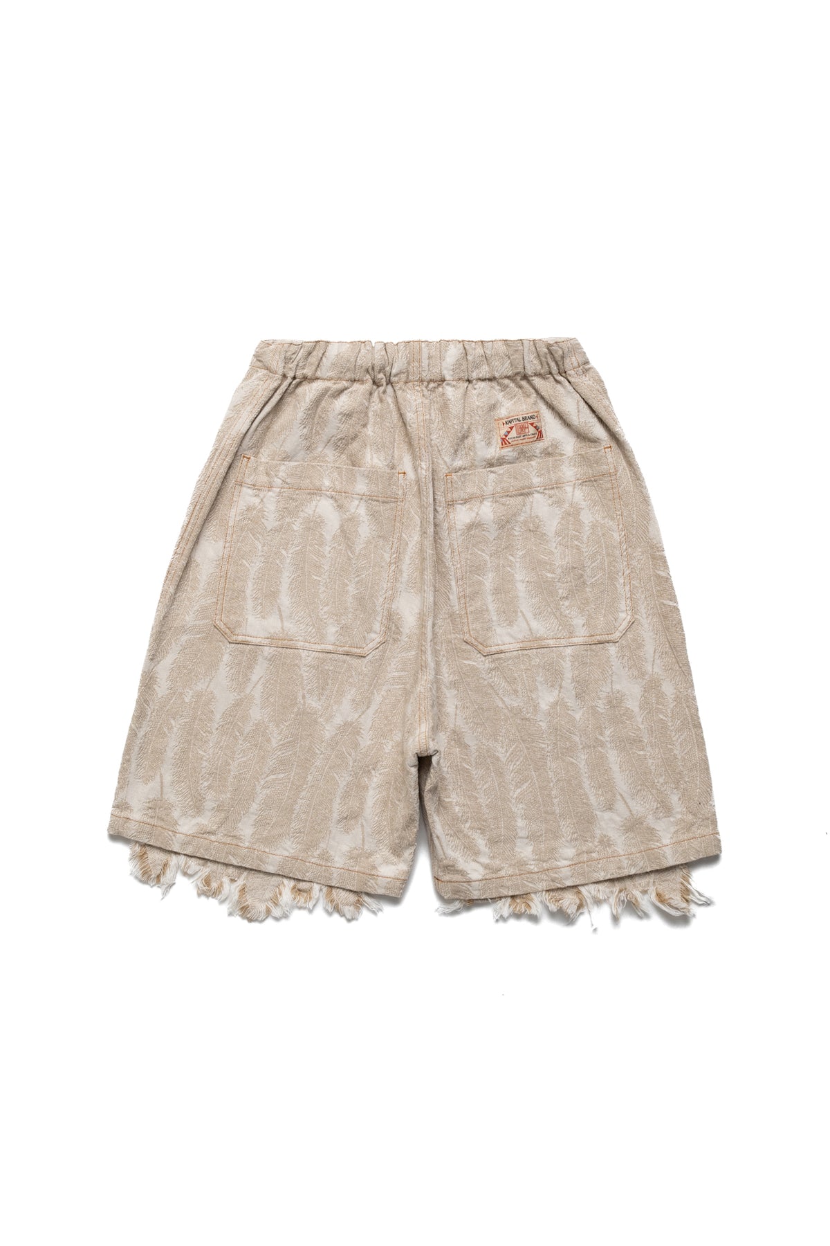 - Jacquard denim shorts that expresses the beautiful blue feathers of a magpie in three dimensions.
