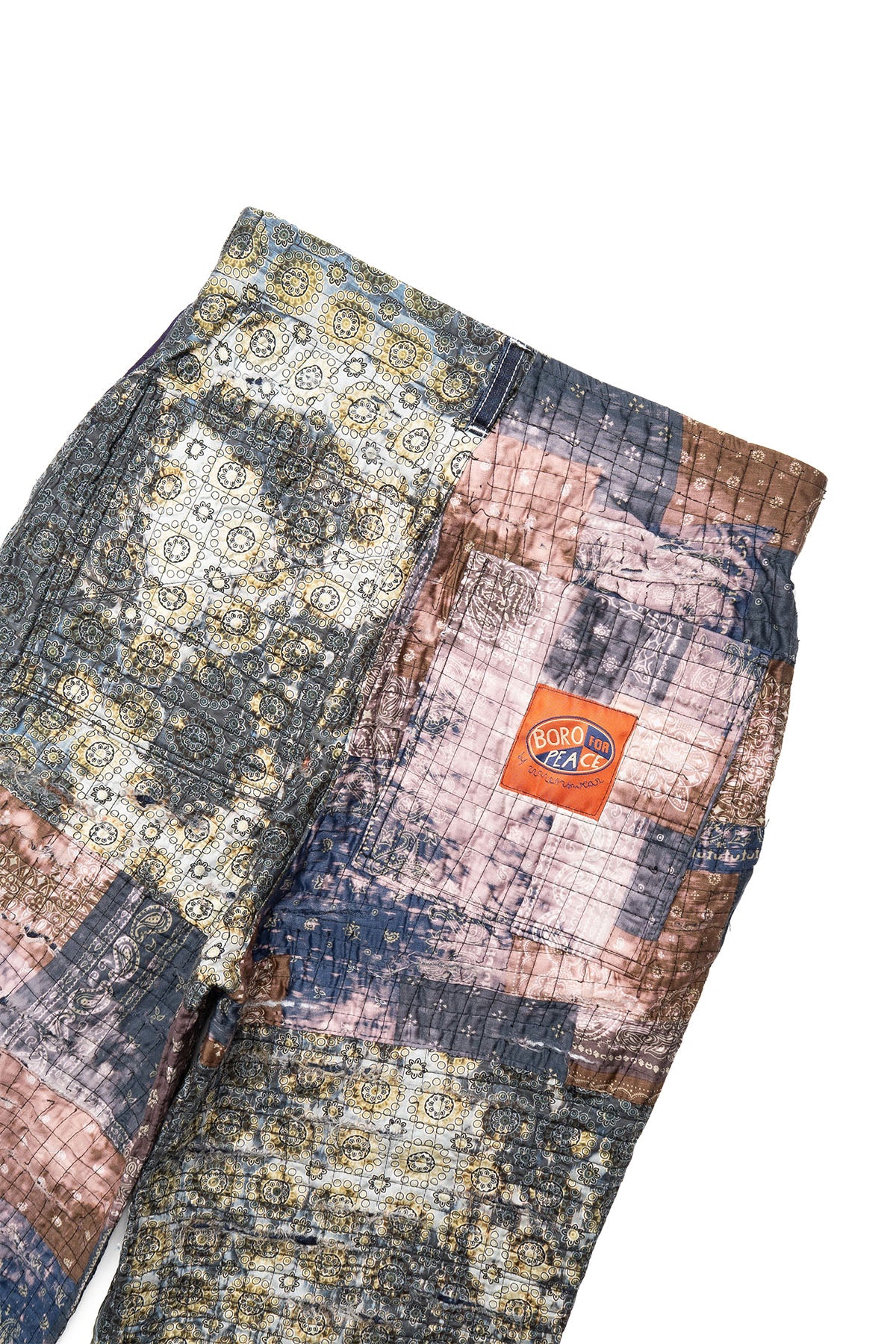 Designed for beauty and social impact, these jeans are a true work of art, featuring artfully distressed and repaired details in the Japanese Boro style. Each pair tells a story of resilience, craftsmanship, and cultural heritage. The Boro technique, originally used by rural Japanese communities to mend and extend the life of garments, is masterfully employed to add unique, textured patches and repairs to these jeans, transforming them into one-of-a-kind pieces. No two pieces are the same, due to the use of up-cycling discarded bandanas in the process.