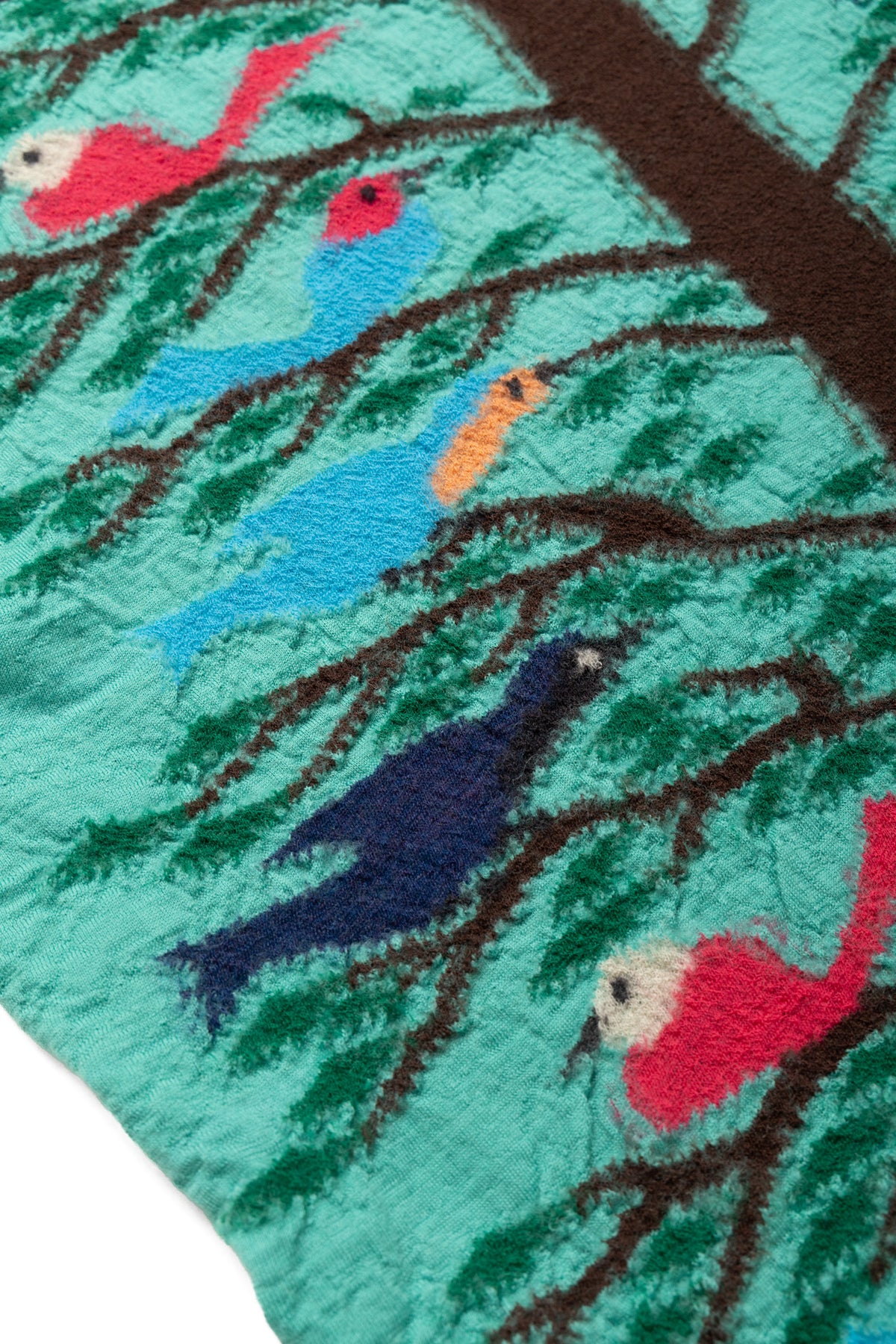 Fulling Wool HAPPY Scarf BIRD TREE - Emerald
