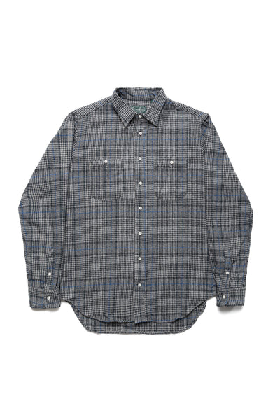 L/S 2 Pocket Work Shirt - Grey Cotton Tweed Check