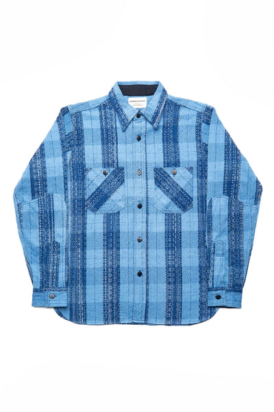 Rain-Drop Sashiko x "Kasuri" Flannel Work Shirt - Natural Indigo