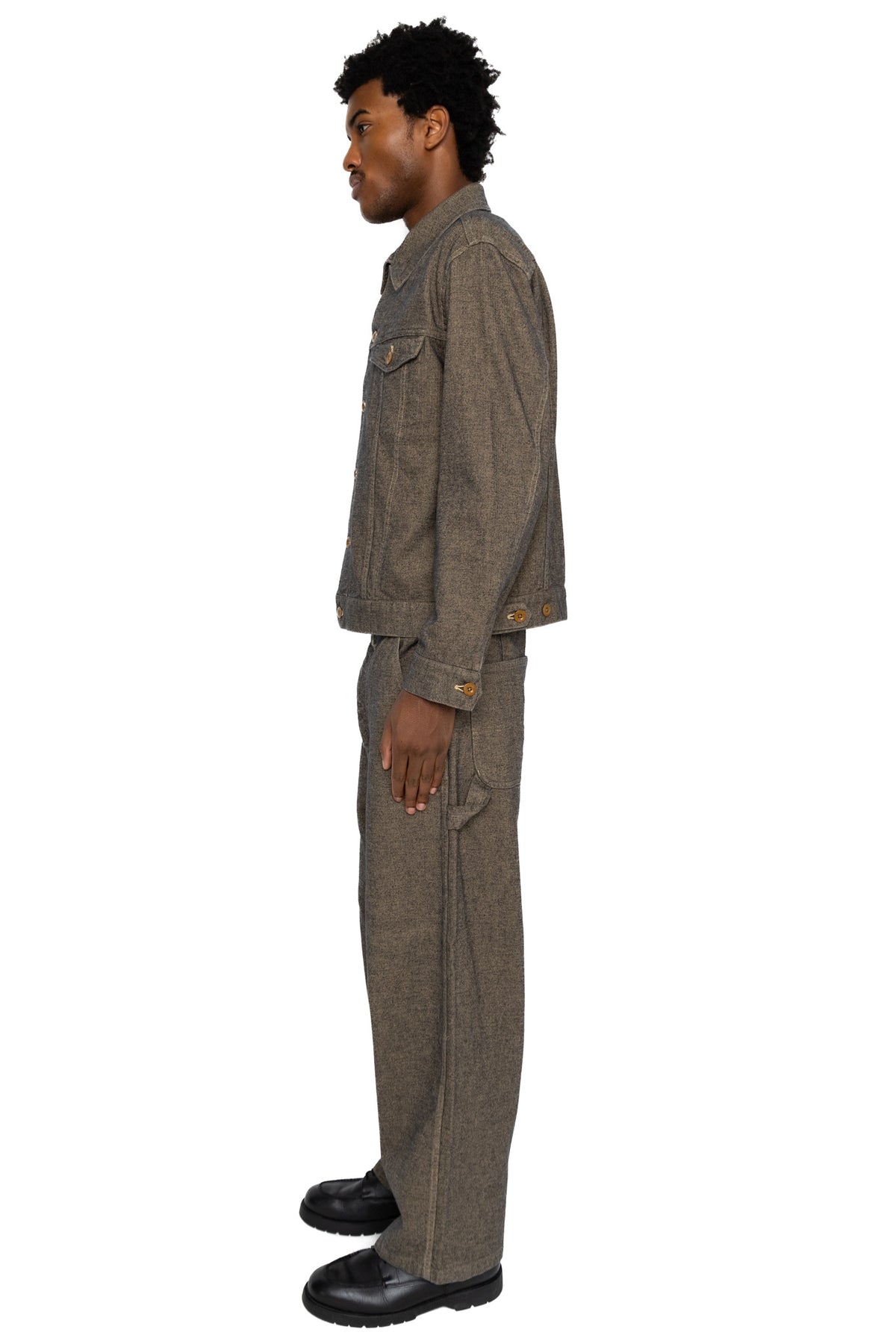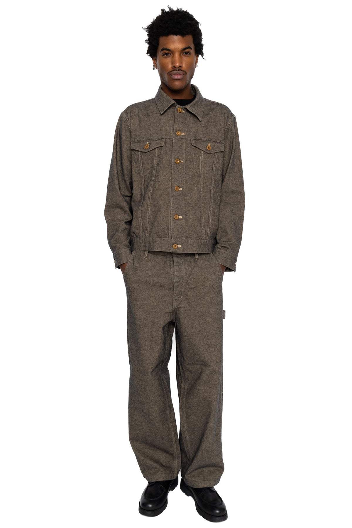 Garment Dye Woolly Finish Herringbone Cloth Painter Pants - Khaki