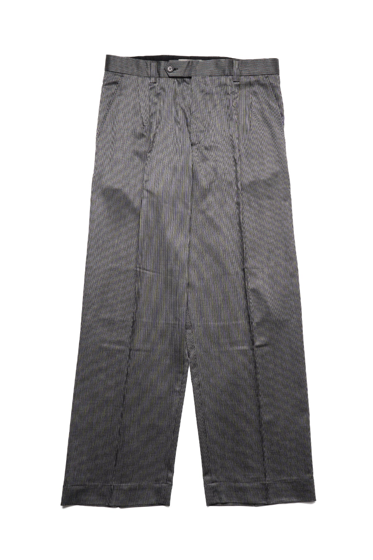 The Classic Trousers has a wide straight fit with double pleats and a mid-rise. Featuring side pockets, rear welt pockets, button fastening, hook-and-eye closure and YKK zip fly. Cut from a deadstock wool silk blend with a smooth hand feel, in a silver fine stripe on a black ground.