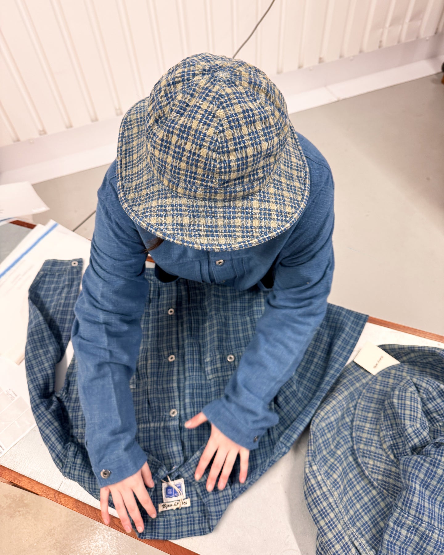 The capsule is made using surplus handwoven fabric originally produced in Thailand. Rather than letting this fabric go to waste, it’s been reworked into the Blue in Green limited collection.