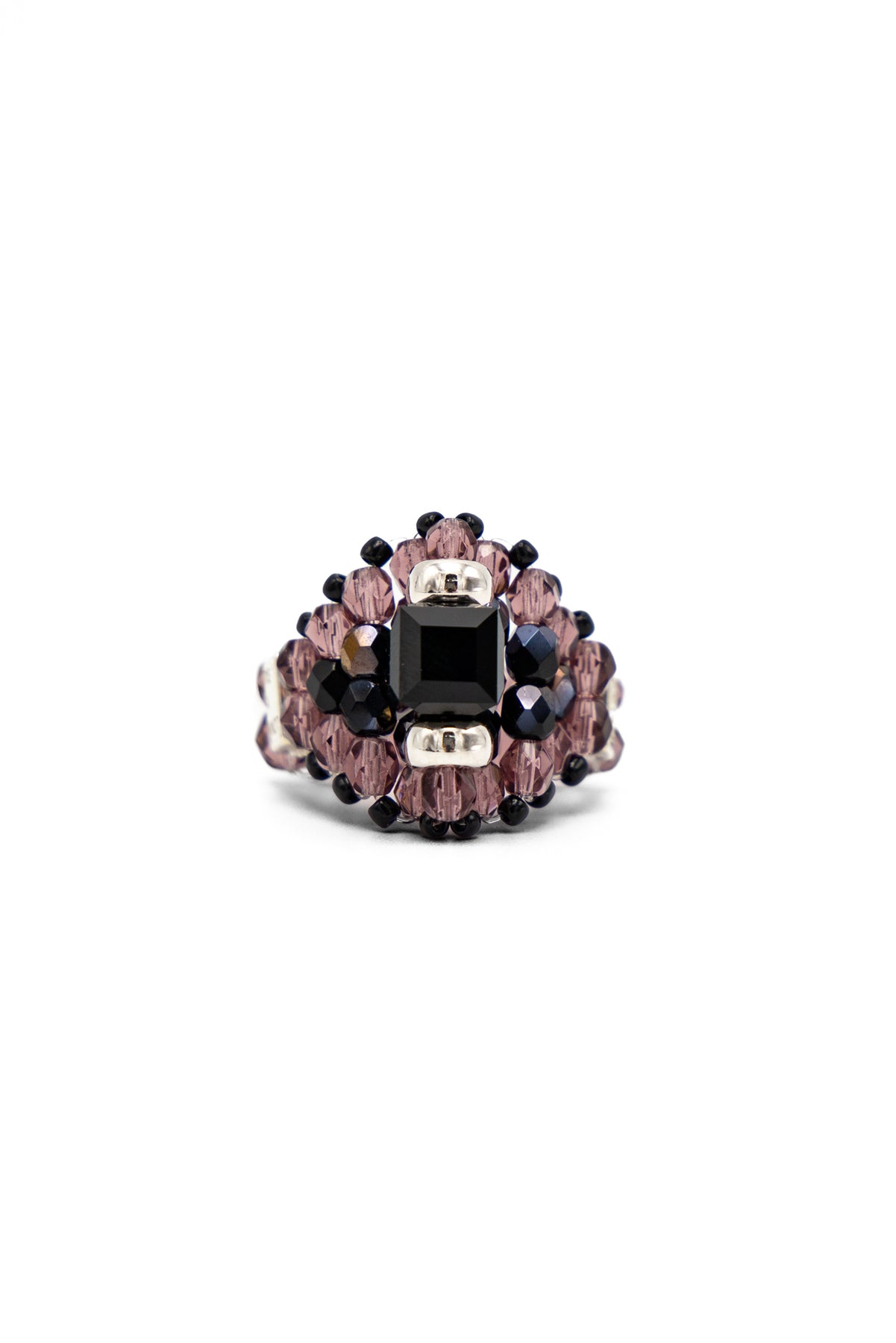 NEEDLES x Tie A Knot Square Crystal Beads Ring - Black x Purple