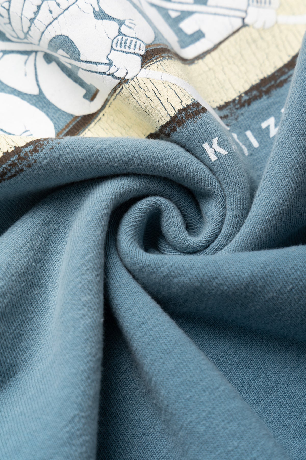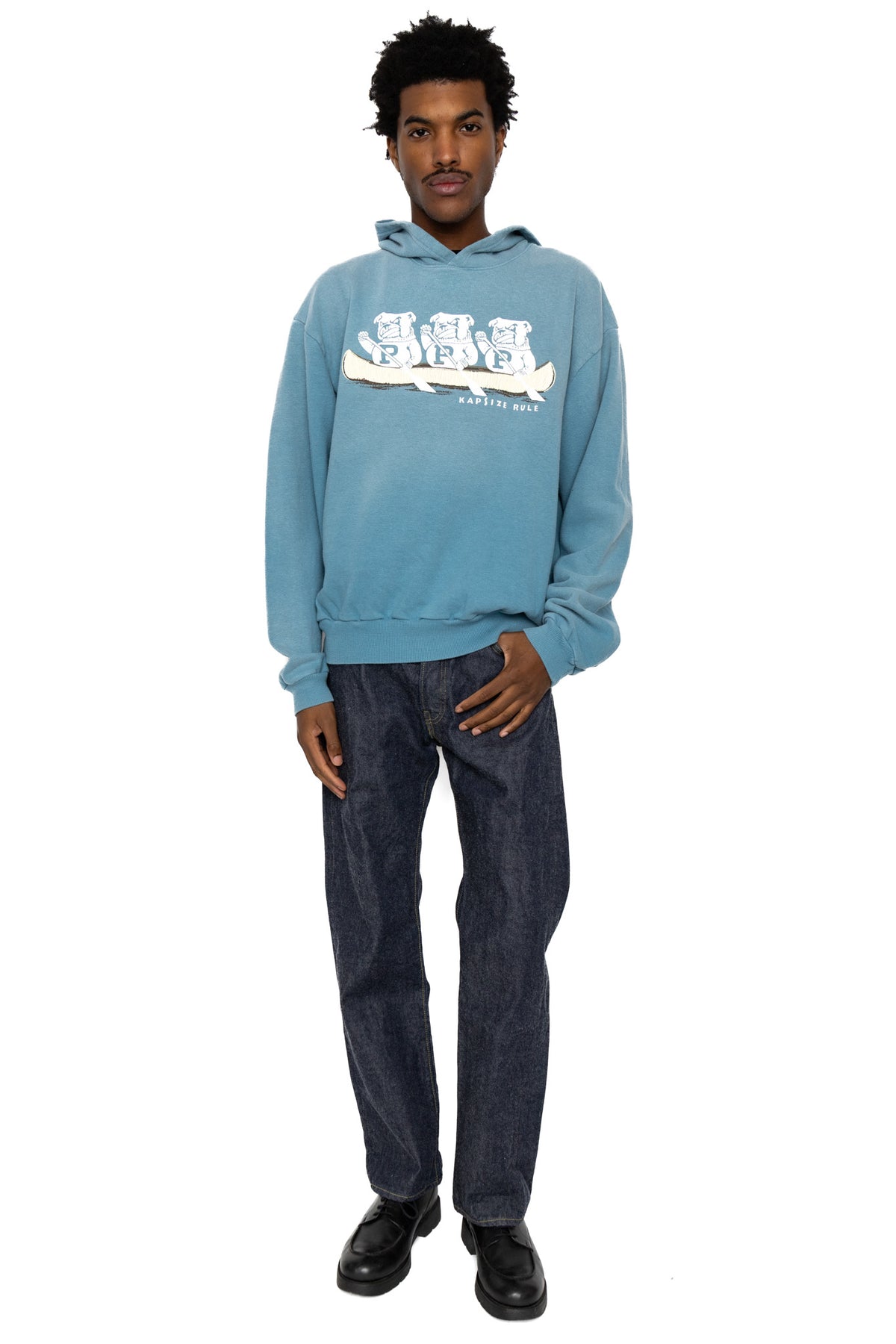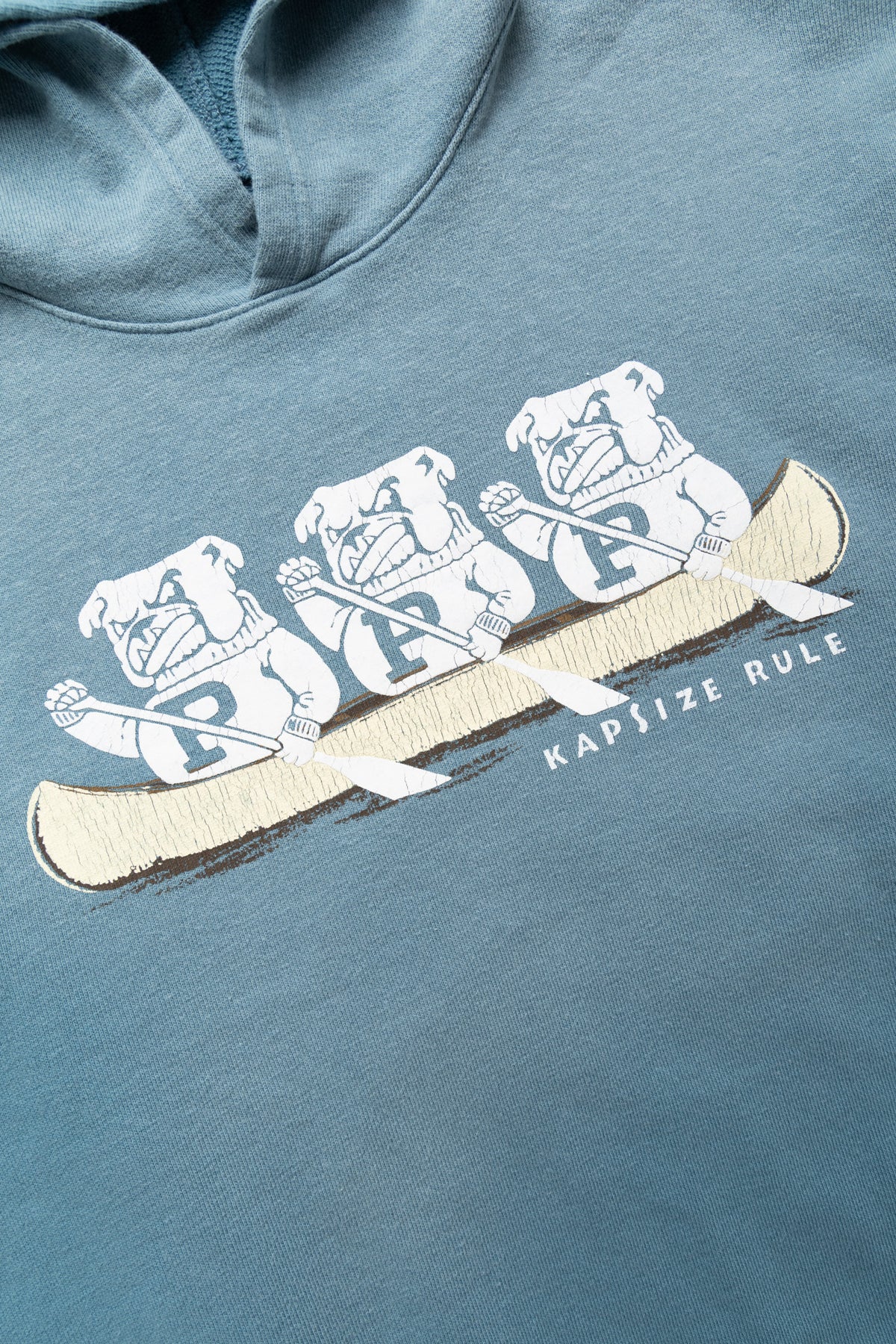 Print of a bulldog paddling a canoe wearing a "P" letter sweater.