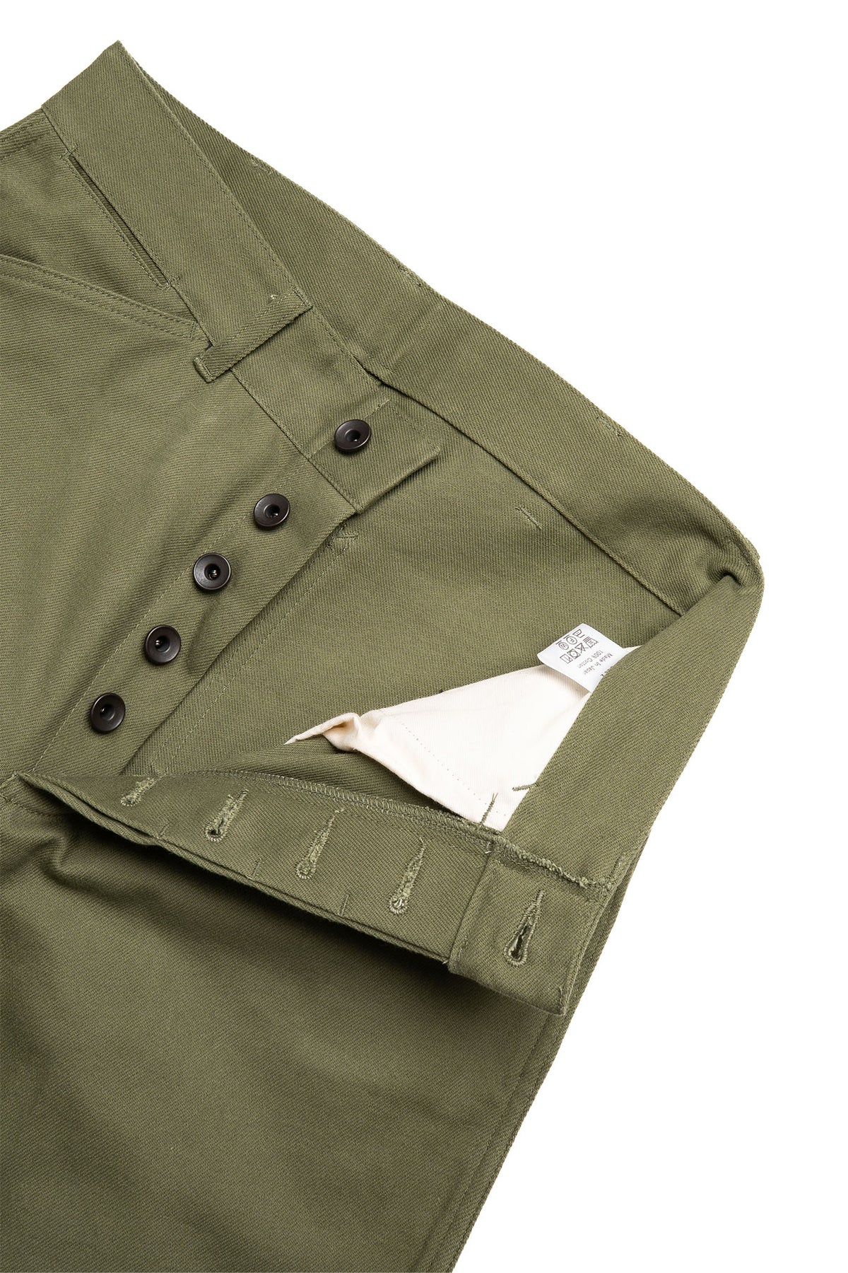 While the original style is found in a HBT, here it’s presented in a hard wearing drill twill. The densely woven fabric is soft to the touch, and has a unique sheen that makes the pant feel special. It’s designed to be an everyday staple, when worn like denim it will break in and work with you.